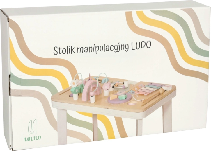 Koka izglītojošais galdiņš LULILO LUDO ir neliels mājas “izglītojošais centrs”, kas piedāvā daudzveidīgus sensoros stimulus un veicina patstāvīgu spēli. Pasteļtoņi, gludas malas un stabila konstrukcija rada drošu vidi ziņkārīgai izpētei.