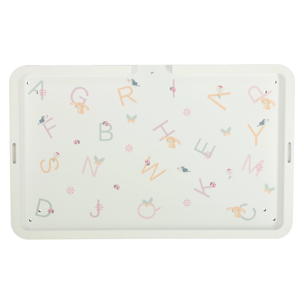 Uz virsmas atradīsiet ksilofonu ar āmuriņu, pērlīšu labirintu, rotējošus un bīdāmus elementus un formu šķirotāju. Šīs aktivitātes attīsta roku veiklību, koncentrēšanos un telpisko iztēli, kamēr koks un maigas krāsas veicina mierīgu spēli.