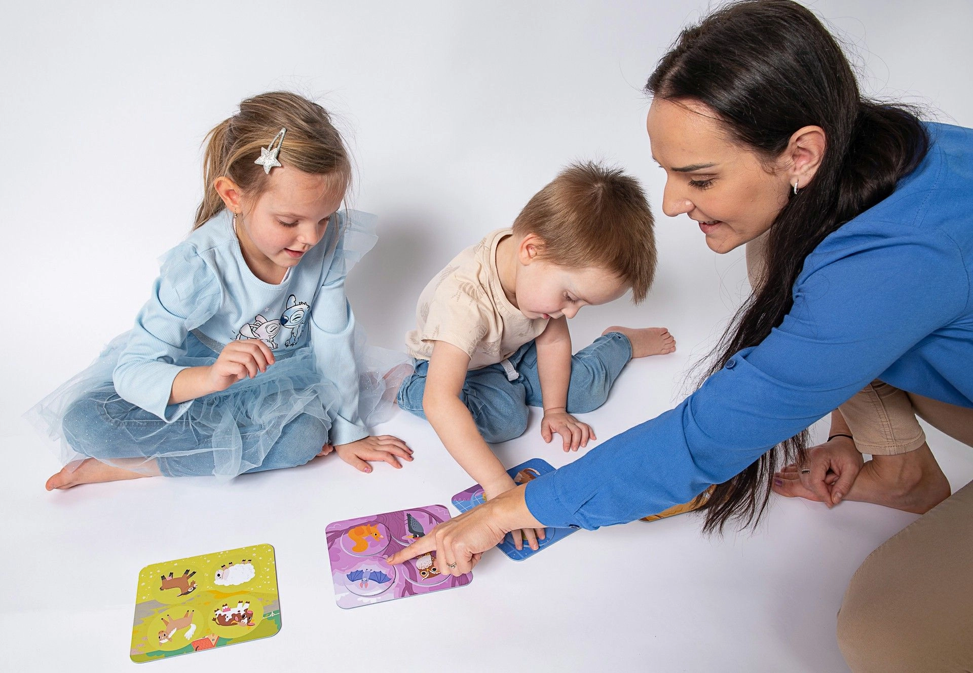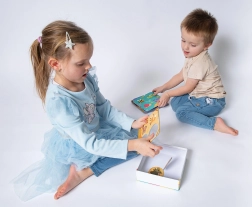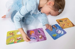 Bērni rotaļīgi apgūst 24 dzīvnieku atpazīšanu un to pareizu piesaisti vidēm, kurās tie dzīvo – mājās, pļavā, mežā vai ūdenī. Lieliski vārdu krājuma attīstīšanai un izpratnei par apkārtējo pasauli.