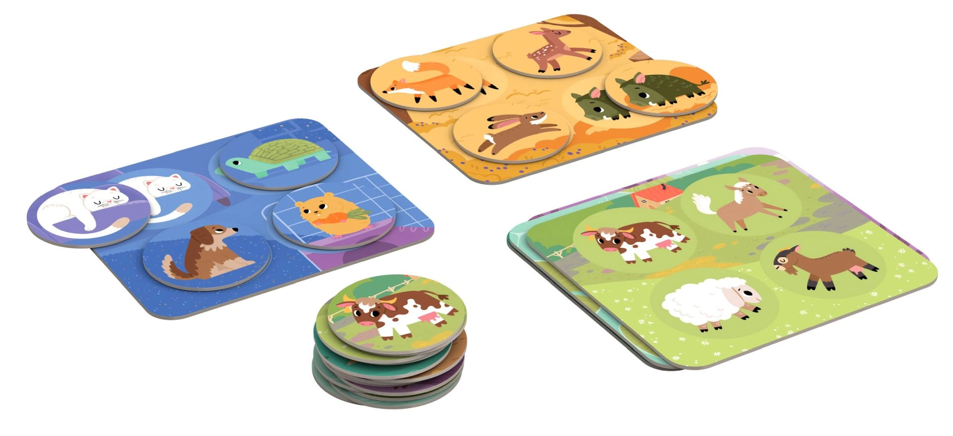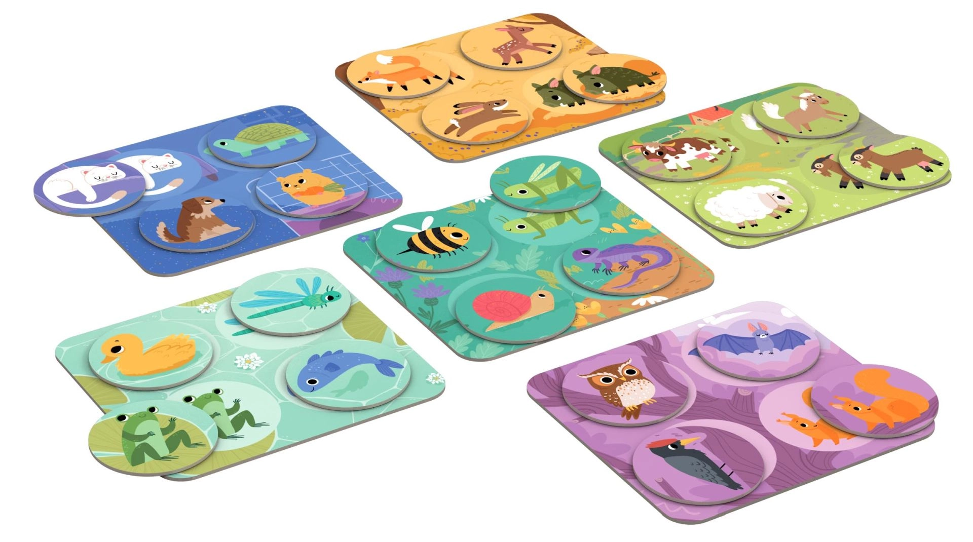 Šī iemīļotā spēle draudzīgā veidā iepazīstina mazuļus ar 24 dzīvniekiem un to vidēm – mājās, mežā, pļavā, pie dīķa un koku galotnēs. Pateicoties lielajiem žetoniem un izturīgajām 2 mm kartona planšetēm, spēle ir viegli satverama un droša mazām rokām. Iepakojumā iekļauti arī padomi un spēles varianti vecākiem un skolotājiem.
