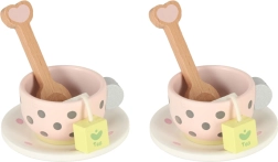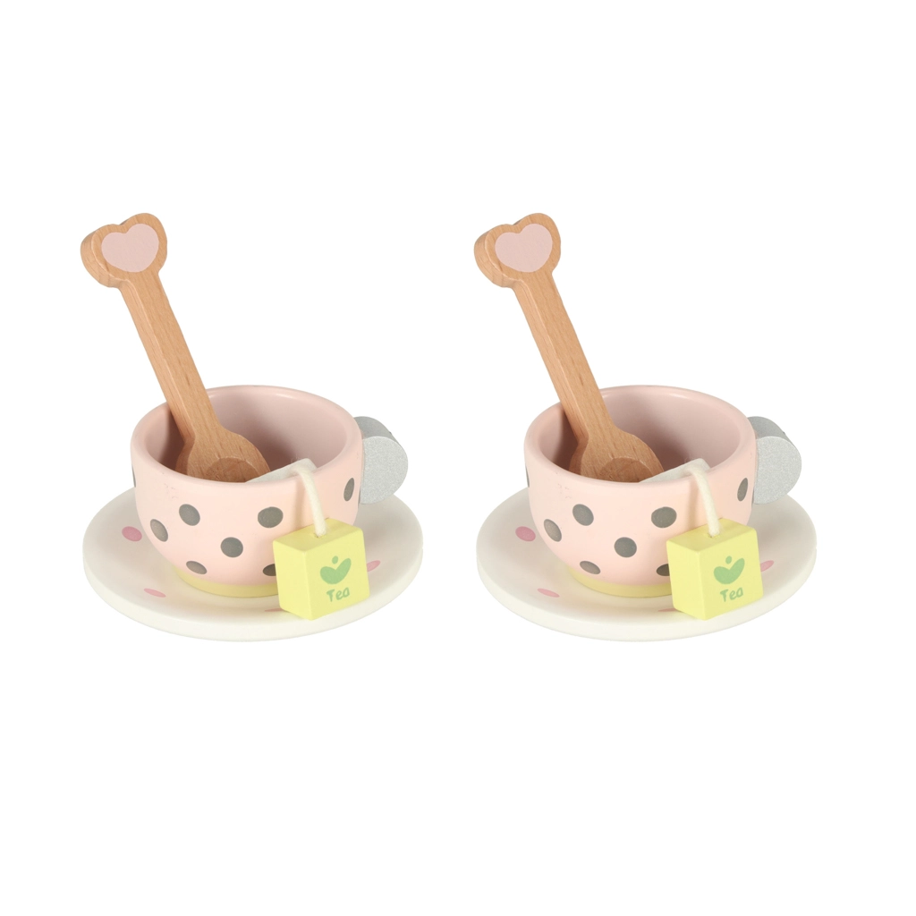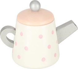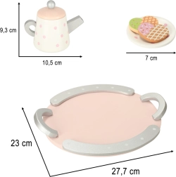 Koka tējas komplektam ir apburošs pasteļtoņu dizains ar smalkiem punktiņiem, kas piesaista bērnu uzmanību un iedrošina spēlēties.