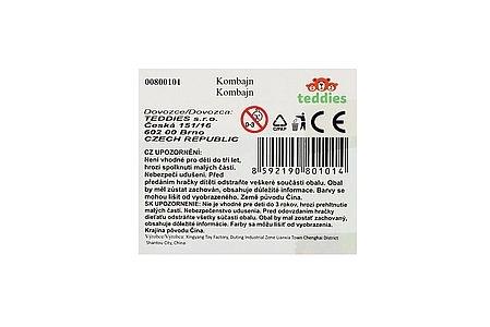 Kompakts 11 cm garums, noapaļotas malas un izturīga plastmasas konstrukcija padara kombainu par drošu rotaļlietu mazākiem bērniem.