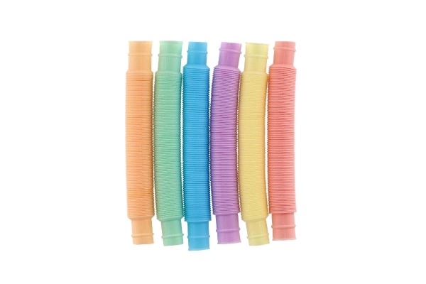 Šis košais 6 plastmasas caurulīšu komplekts piedāvā bezgalīgas rotaļu iespējas – no vienkāršas izstiepšanas un saspiešanas līdz oriģinālu veidojumu radīšanai. Pateicoties elastīgajai, harmonikas tipa konstrukcijai, caurulītes kustībā rada jautras skaņas, kas veicina maņu stimulāciju un koncentrēšanos.
