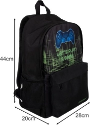 Iekšpusē ir plaša galvenā kamera ar polsterētu kabatu klēpjdatoram, priekšējā kabata ar slēptu rāvējslēdzēju sīklietām un divas sānu tīkla kabatas pudelītei vai lietussargam. Mūsdienīga spēļu grafika ar kontrolieri piešķir mugursomai oriģinālu izskatu, kas iepriecinās visus geiminga cienītājus.