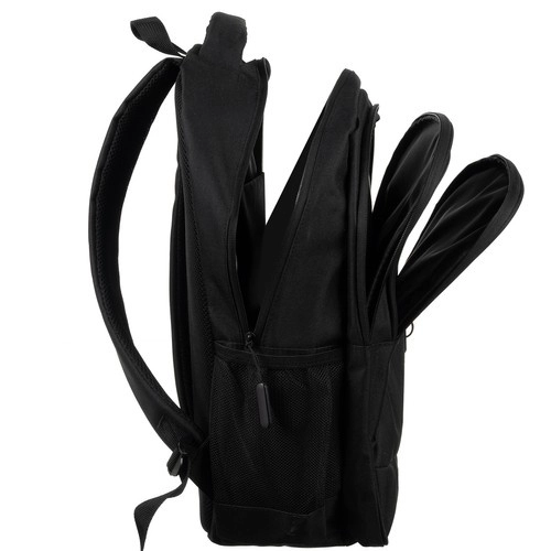 Iekšpuse piedāvā plašu galveno nodalījumu ar dubulto rāvējslēdzēju un polsterētu kabatu klēpjdatoram/planšetdatoram, otro nodalījumu plakaniem dokumentiem vai blokiem un priekšējo praktisku kabatu sīkumiem. Priekšpusē novietota atstarojoša lente labākai redzamībai krēslā. Sānos atradīsiet tīkla kabatas ar gumiju, ideāli piemērotas ūdens pudelei.