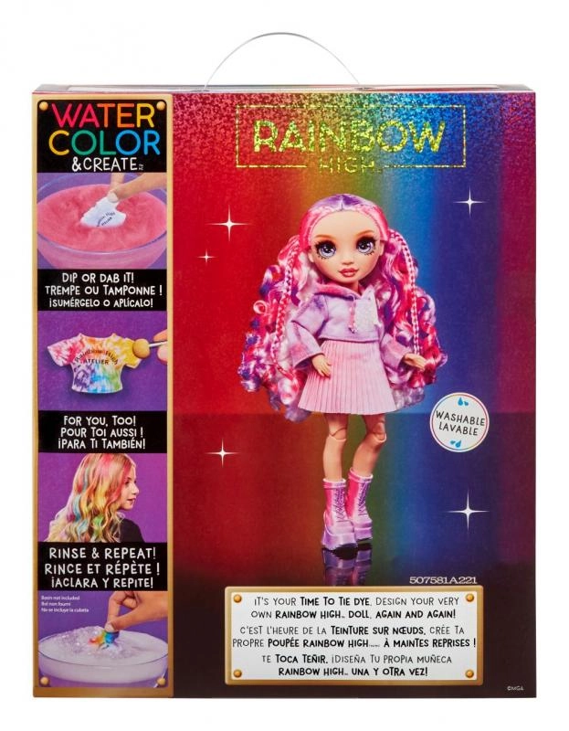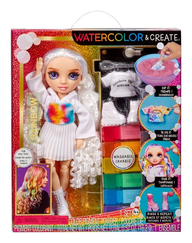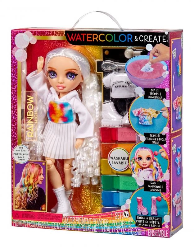 Rainbow High lelle ar ūdenskrāsām ļauj pārveidot tās izskatu pēc savas fantāzijas. Komplektā ietilpst lelle baltā tērpā un seši nomazgājamu pulverkrāsu toņi varavīksnes krāsās: sarkans, oranžs, dzeltens, zaļš, zils un violets. Šos pulverus var viegli uzklāt un mainīt lelles apģērba un matu krāsas.