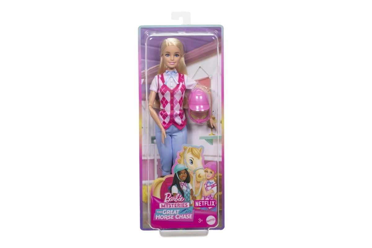 Visiem mazajiem zirgu un Barbija faniem šī Malibu lelle ir kā radīta. Tērpta stilīgā jāšanas apģērbā, tostarp rozā rūtainā vestē, zilās biksēs un brūnos jāšanas zābakos. Barbija ir gatava auļošanas piedzīvojumiem.