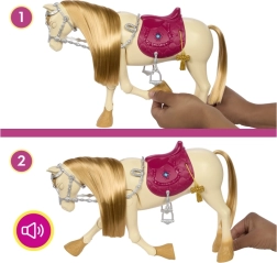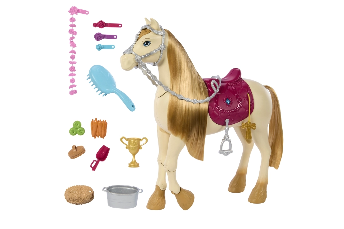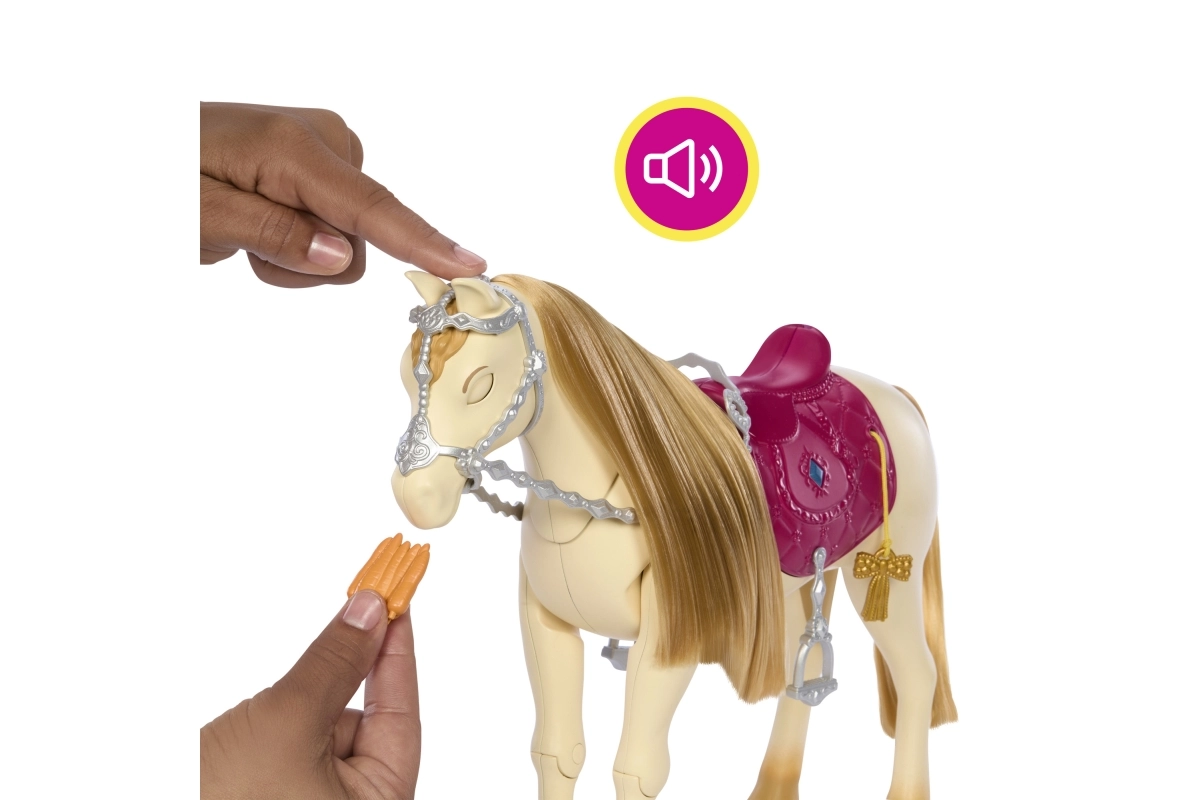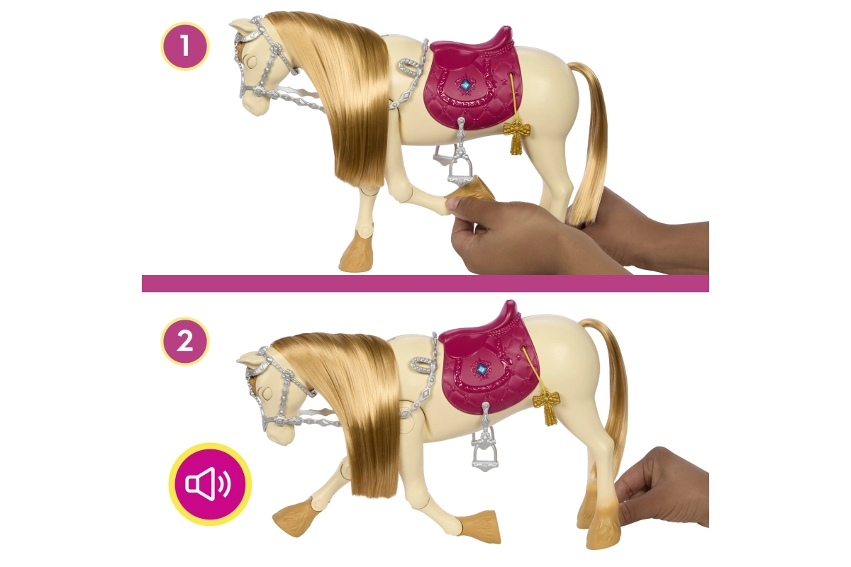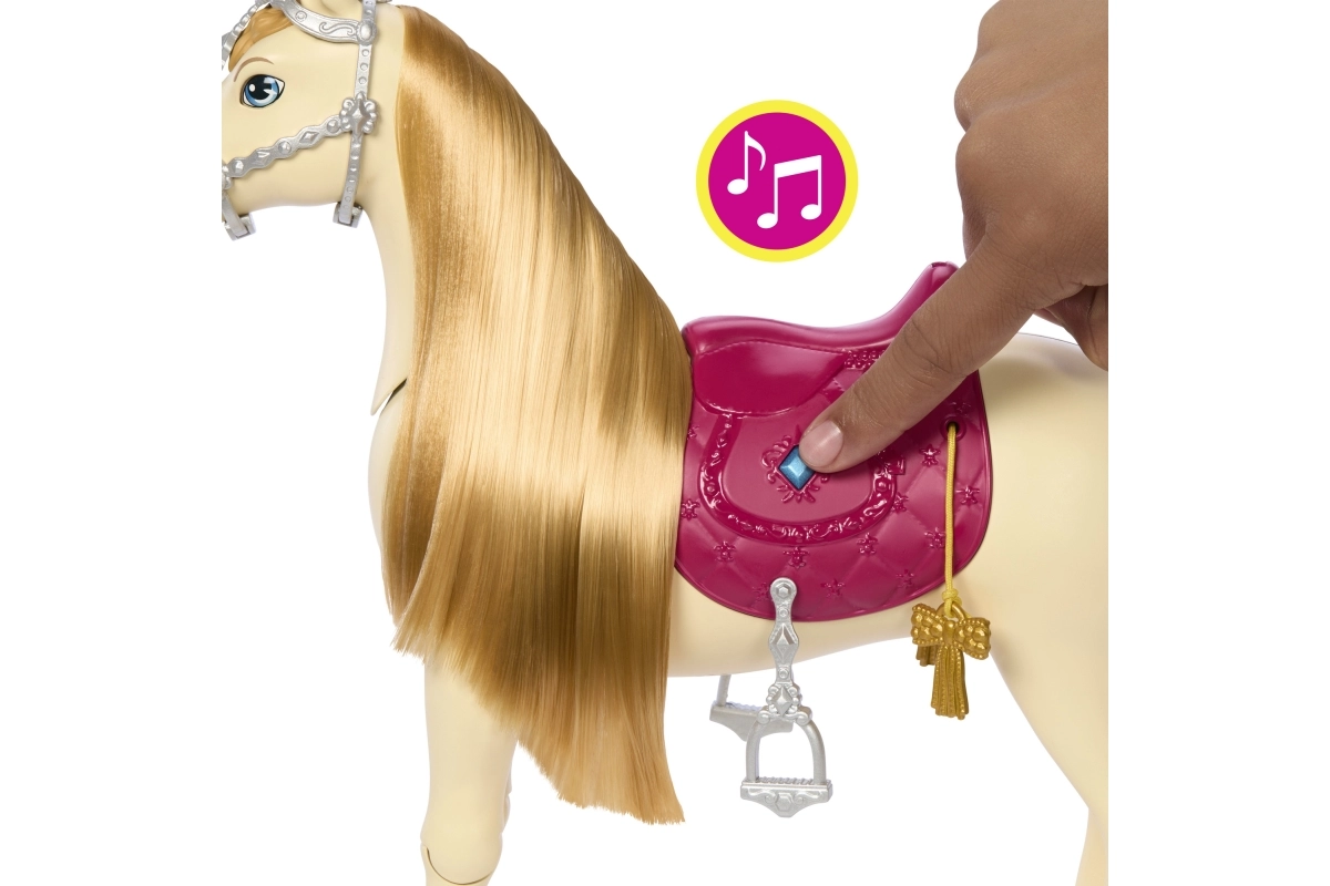 Pievienojieties Barbie neaizmirstamos piedzīvojumos ar viņas dejojošo zirgu, kas piedāvā stundām ilgu izklaidi un radošumu. Zirgs prot ne tikai dejot — tas var arī atskaņot dziesmas un reaģēt uz taustes impulsiem. Ar 12 dažādiem piederumiem bērni var izdzīvot bezgalīgus, iztēles pilnus stāstus.