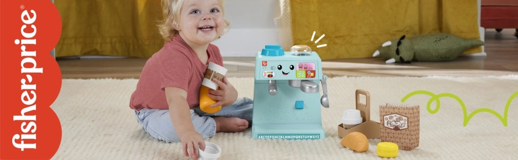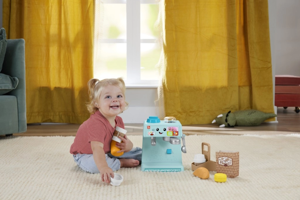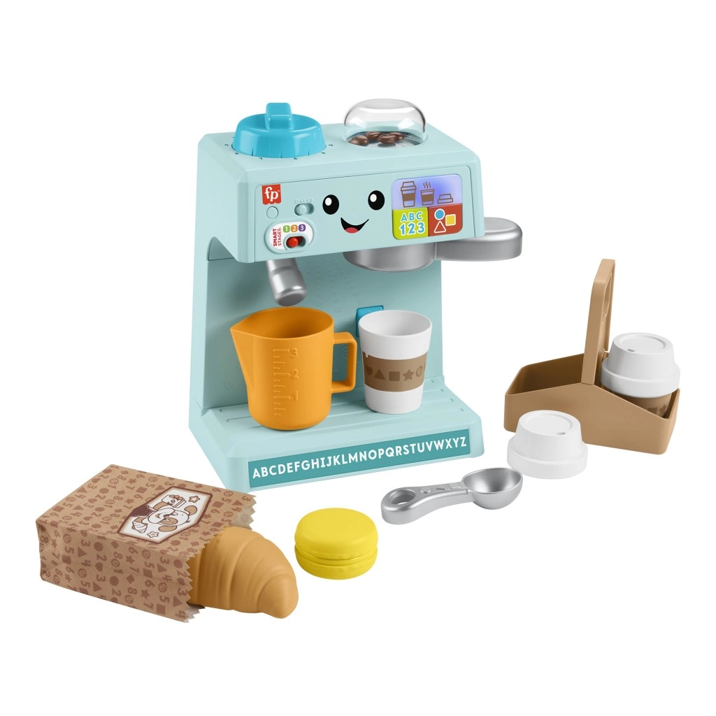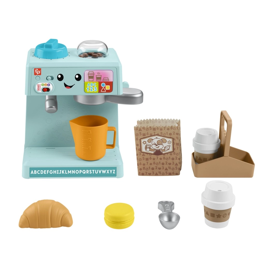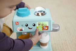 Šis bērnu kafijas automāts no Fisher-Price ir paredzēts izglītojošai rotaļai. Interaktīvie elementi palīdz bērniem apgūt alfabētu, krāsas un skaitīšanu. Izmantojiet Smart Stages™ iespēju, lai pielāgotu mācīšanās līmeni. Kafijas automātā ir vairāk nekā 75 skaņas, dziesmiņas un frāzes, kas rosinās bērnu iztēli.