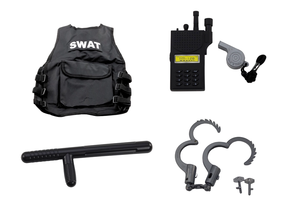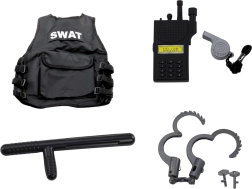 - Reālistiski piederumi: vesta, steks, rokudzelži, svilpe, rācija