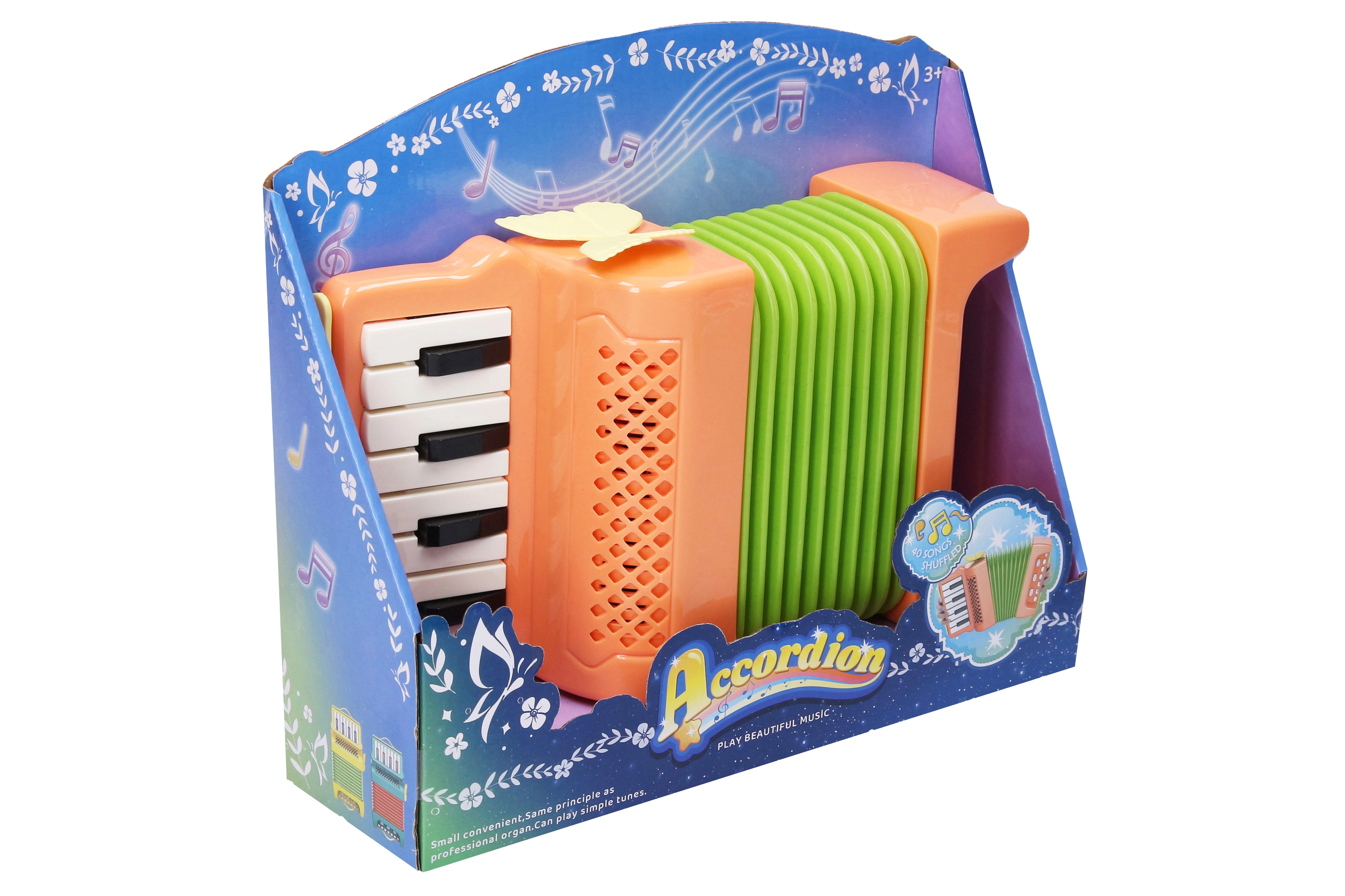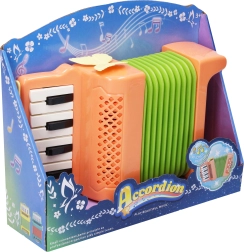 Izklaidējoša bērnu izvilkamā harmonika–akordeons piedāvā reālistiskus skaņas efektus un veicina ritma un muzikālās izjūtas attīstību. Kompaktie izmēri atvieglo satveršanu arī mazākām rokām, ideāli piemērota kā pirmais mūzikas instruments. Darbojas ar 2× AA baterijām (nav iekļautas). Piemērota bērniem no 3 gadu vecuma.