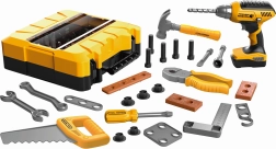 Izklaidējošs un praktisks bērnu instrumentu komplekts pārnēsājamā koferītī piedāvā visu mazajiem meistariem. Komplektā ir urbjmašīna ar gaismas efektiem, bagātīgs piederumu klāsts un ērta pārnēsāšana pateicoties kompaktajiem izmēriem 26 × 9 × 25,5 cm.