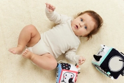 Augsts melnbalto motīvu kontrasts ar krāsainām detaļām stimulē redzi un notur mazuļa uzmanību rotaļu laikā.