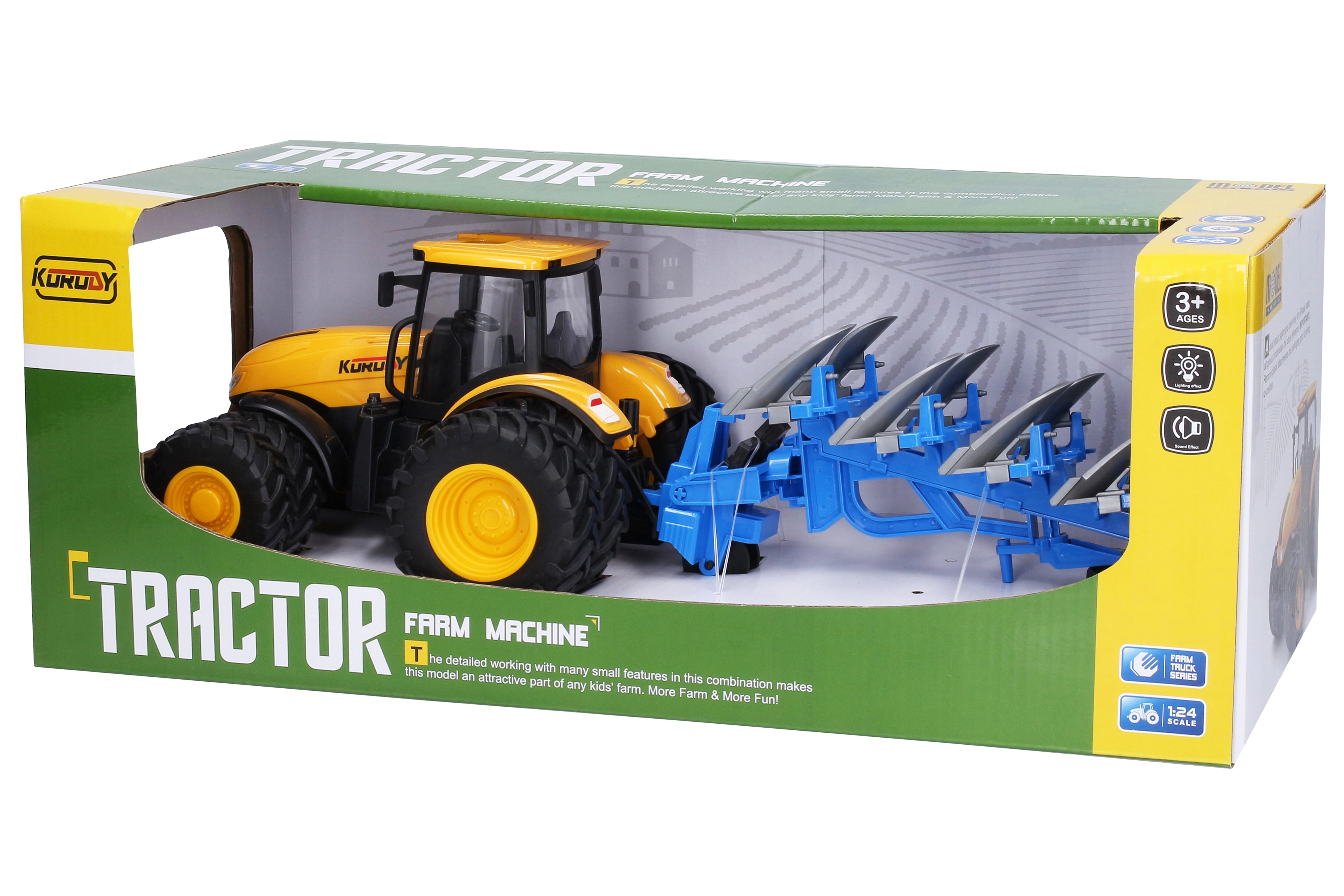 Traktors izceļas ar precīzu izpildījumu un funkcionāliem piederumiem, tādējādi rotaļlieta ir reālistiska īsta transportlīdzekļa imitācija. Izstrādāts ar dubultajiem riteņiem labākai stabilitātei un kustībai pa nelīdzenu reljefu.