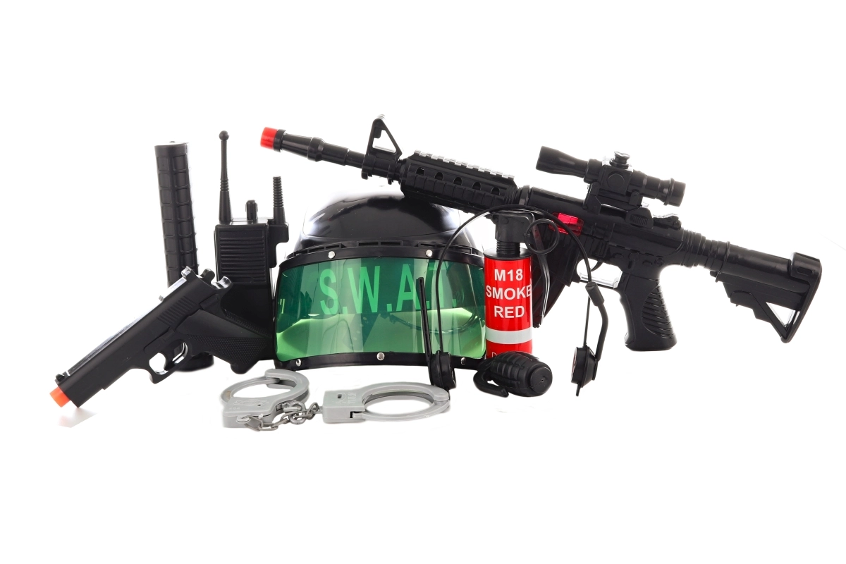 Automāts, pistole, rokudzelži, rācija un granāta piešķir spēlei spriedzi un izklaidi, vienlaikus paliekot droši, pateicoties plastmasas izpildījumam.