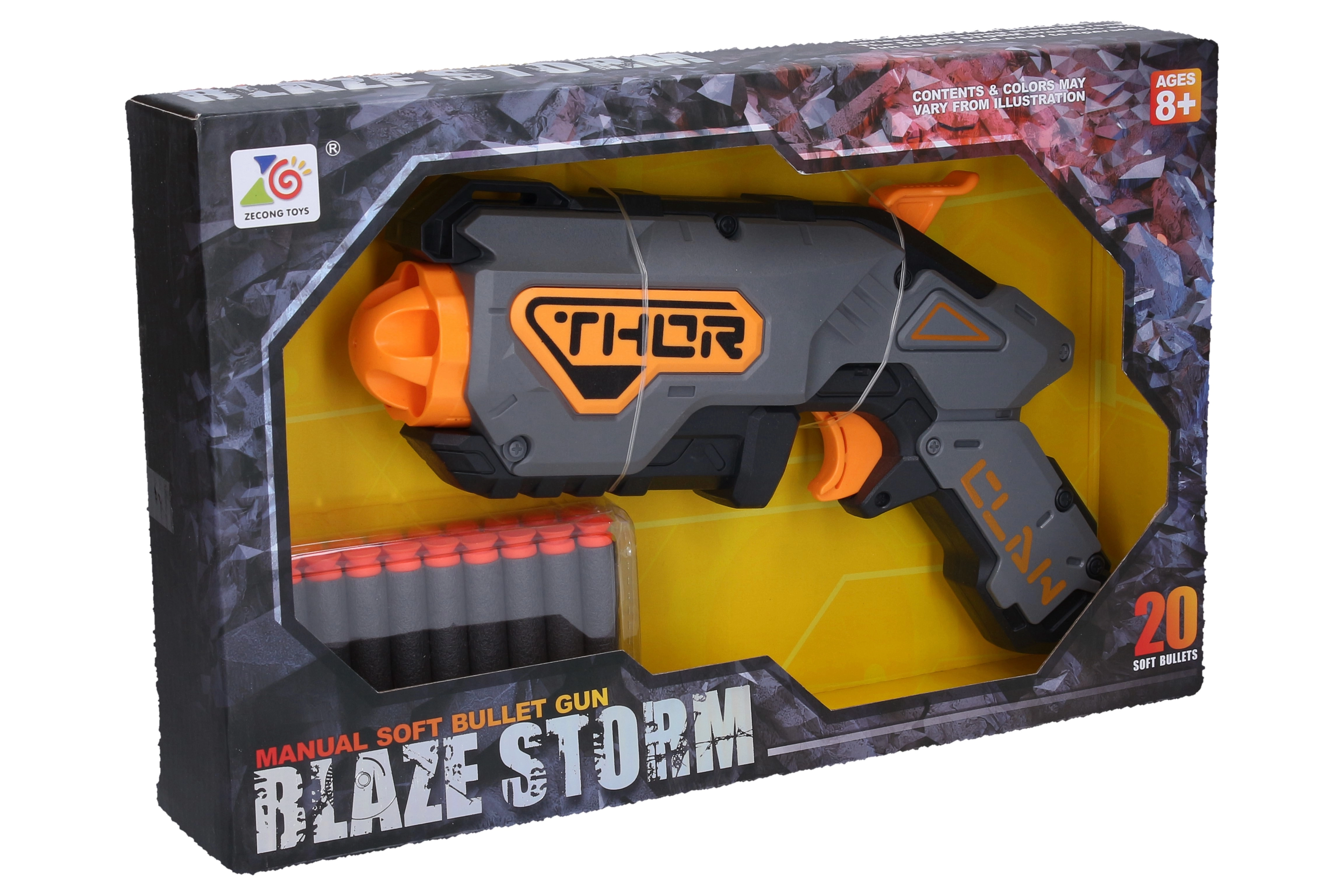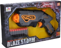 Šī vieglā un izturīgā pistole ar putu projektiliem sniedz daudz izklaides bez riska. Pateicoties izmēriem 27 × 5 × 15 cm, tā ērti guļ rokā un ir viegli lietojama. Komplektā atradīsiet 20 putu lodiņas, tāpēc varēsiet spēlēt ilgi bez biežas papildināšanas.