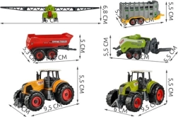Šis 6 daļu saimniecības komplekts ir ideāli piemērots mazajiem tehnikas un lauku dzīves cienītājiem. Traktori un lauksaimniecības tehnikas modeļi ar precīzām detaļām veicina sīkās motorikas attīstību un māca bērniem par lauku darbiem un dzīvnieku kopšanu. Daļas savā starpā var viegli savienot (piem., traktoru ar piekabi), kas piešķir spēlei reālistisku dimensiju.