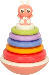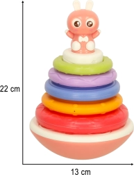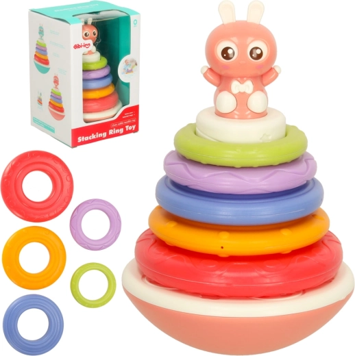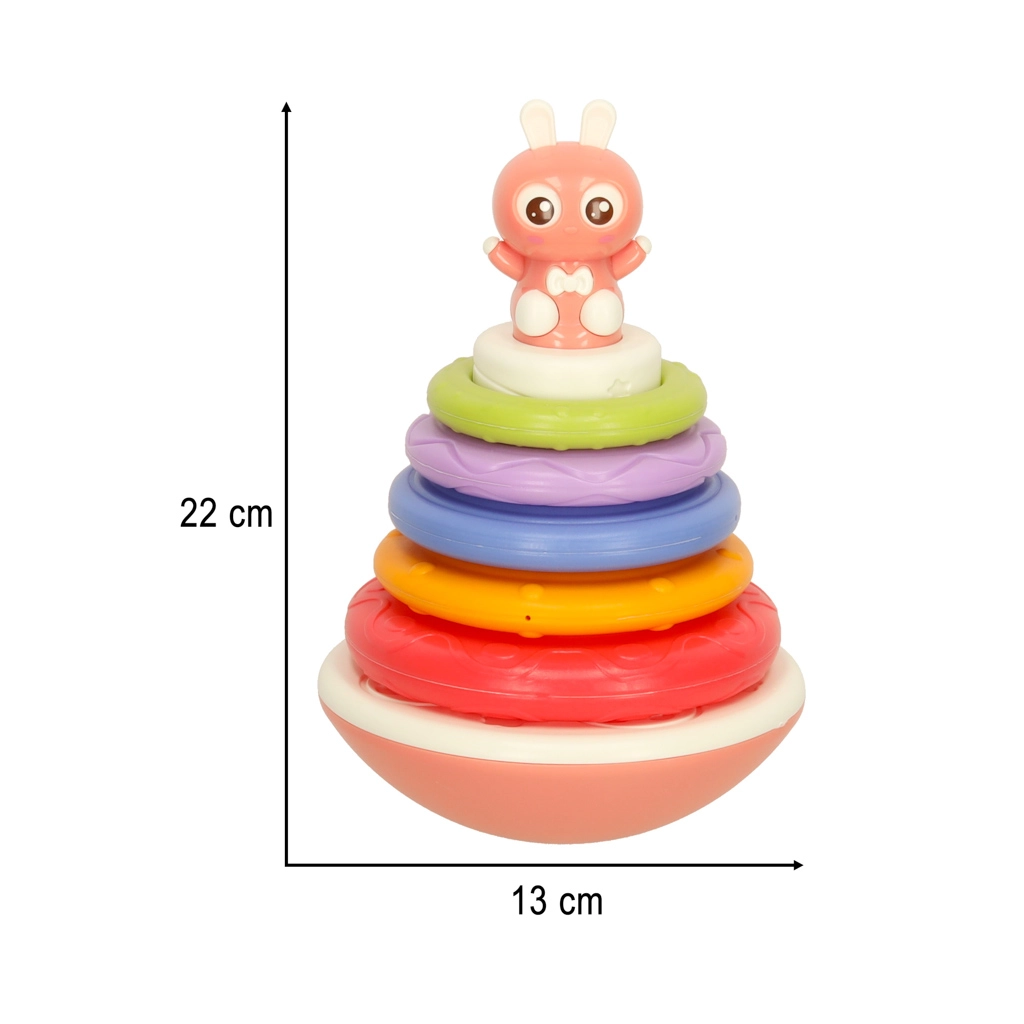 Šūpojošā rotaļlieta Bibi-Inn ir veidota, lai stimulētu jūsu bērna redzi, dzirdi un motoriku. Jautrais trusītis uz pamatnes un krāsaino riņķu daudzveidība nodrošina stundām ilgu izklaidi, veidojot varavīksnes torni.