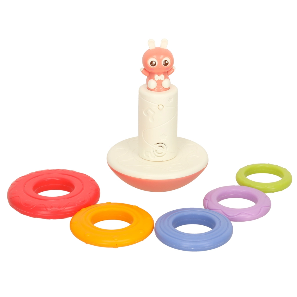 Rotaļlieta ir izgatavota no augstas kvalitātes materiāliem, kas garantē jūsu bērna drošību. Liekot riņķus, bērns attīsta koordināciju un sīko motoriku, savukārt jautrās melodijas motivē turpināt spēlēties.