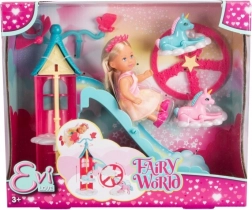 Ienāciet feju valstībā ar lelli Evi Love, kas pārvēršas burvju fejā kopā ar saviem diviem mīlīgajiem vienradžiem. Spēļu tornis piedāvā kustīgu liftu, karuseli mākoņos abiem vienradžiem, slidkalniņu un slepeno slēptuvi nūjiņai. Evi var piestiprināt pie augšējā balsta, lai viņa it kā “lidotu” ar tauriņiem virs visa torņa.
