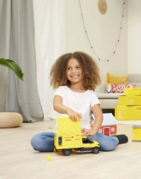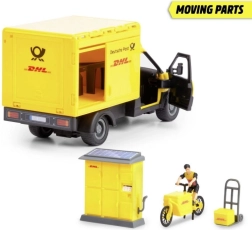 Šis detalizēti izstrādātais komplekts iepazīstina bērnus ar paku piegādes pasauli. Reālistisks VOLVO kravas auto DHL krāsās ar atveramiem elementiem, gaismām un skaņām pārvērš katru spēli autentiskā piedzīvojumā. Komplektā iekļauta kurjera figūra, velosipēds ar kasti, rokas ratiņi, sūtījumi un paku automāts ar saules paneli pilnvērtīgiem piegādes scenārijiem.
