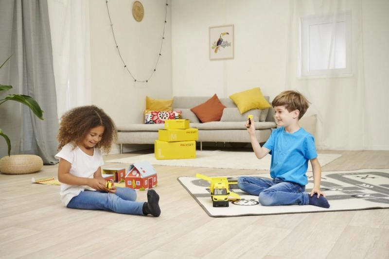 Paku automāts/parcel box, sūtījumi, rokas ratiņi un citi piederumi paplašina spēles iespējas un veicina radošumu un motoriku.