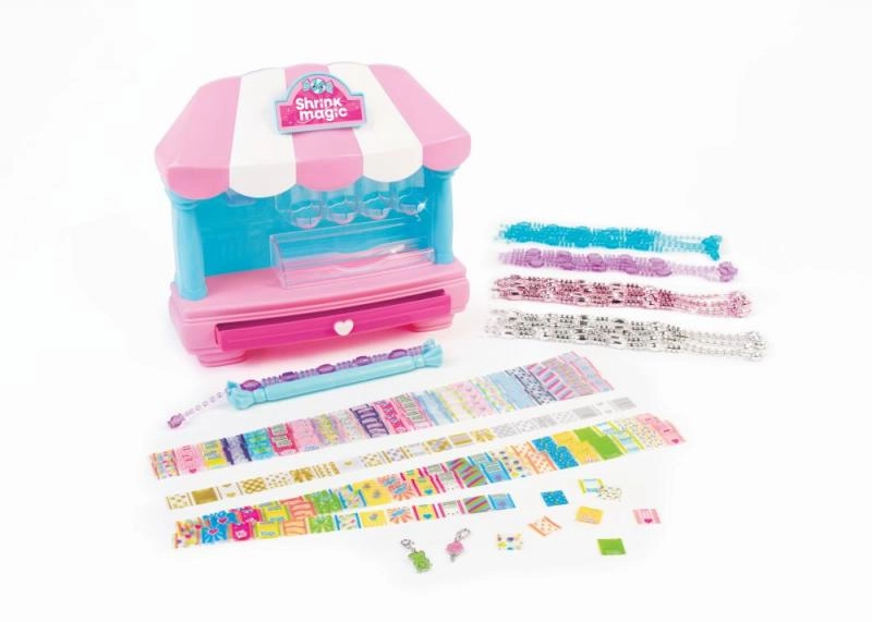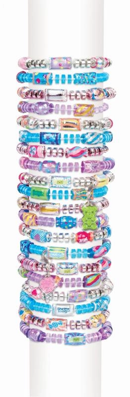 Atklājiet komplekta Shrink Magic Candy Shop burvību! Šis komplekts ir veidots, lai jūs varētu izgatavot aproces, kas ir ne vien skaistas, bet arī unikālas: