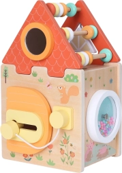 Šī rotaļlieta ir ideāla bērna attīstībai, jo katra mājiņas siena slēpj jaunu piedzīvojumu – vai tā būtu šķirošana, bīdīšana vai slēdzīši. Kubā ir arī skaitītājs, kas kalpo kā mājiņas jumts.