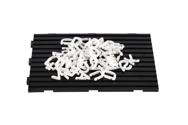 Šī puzle satur plastmasas burtus un ciparus, kurus var viegli iestiprināt sagatavotajās pamatnēs. Bērni var veidot dažādus vārdus, teikumus vai uzrakstus, kas palīdz attīstīt viņu valodas prasmes aizraujošā un praktiskā veidā.