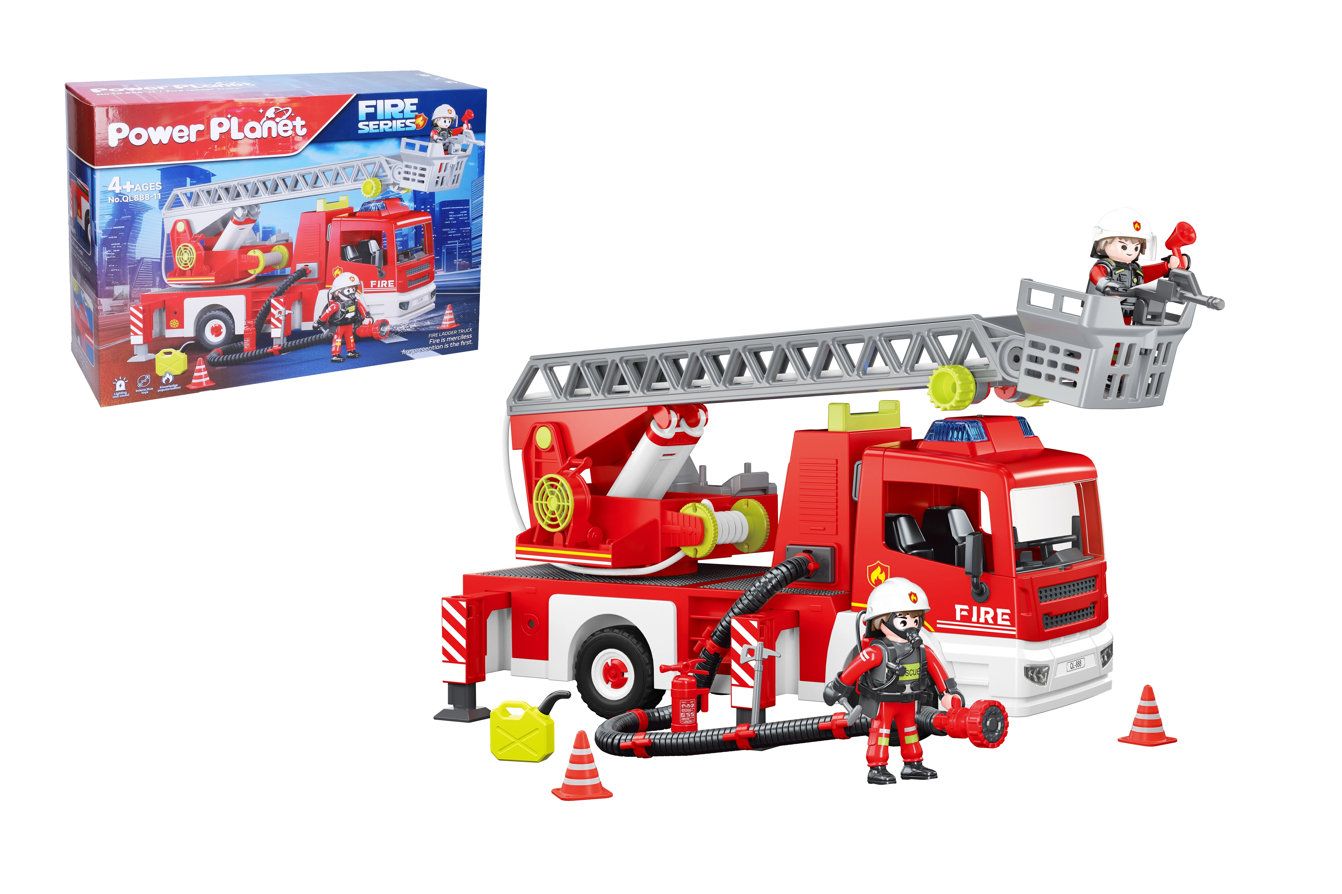 Ugunsdzēsēju auto ar izbīdāmu kāpni ir lielisks konstruktors visiem mazajiem glābējiem. Ar reālistiskiem gaismas un skaņas efektiem tas sniedz bezgalīgas izklaides stundas.