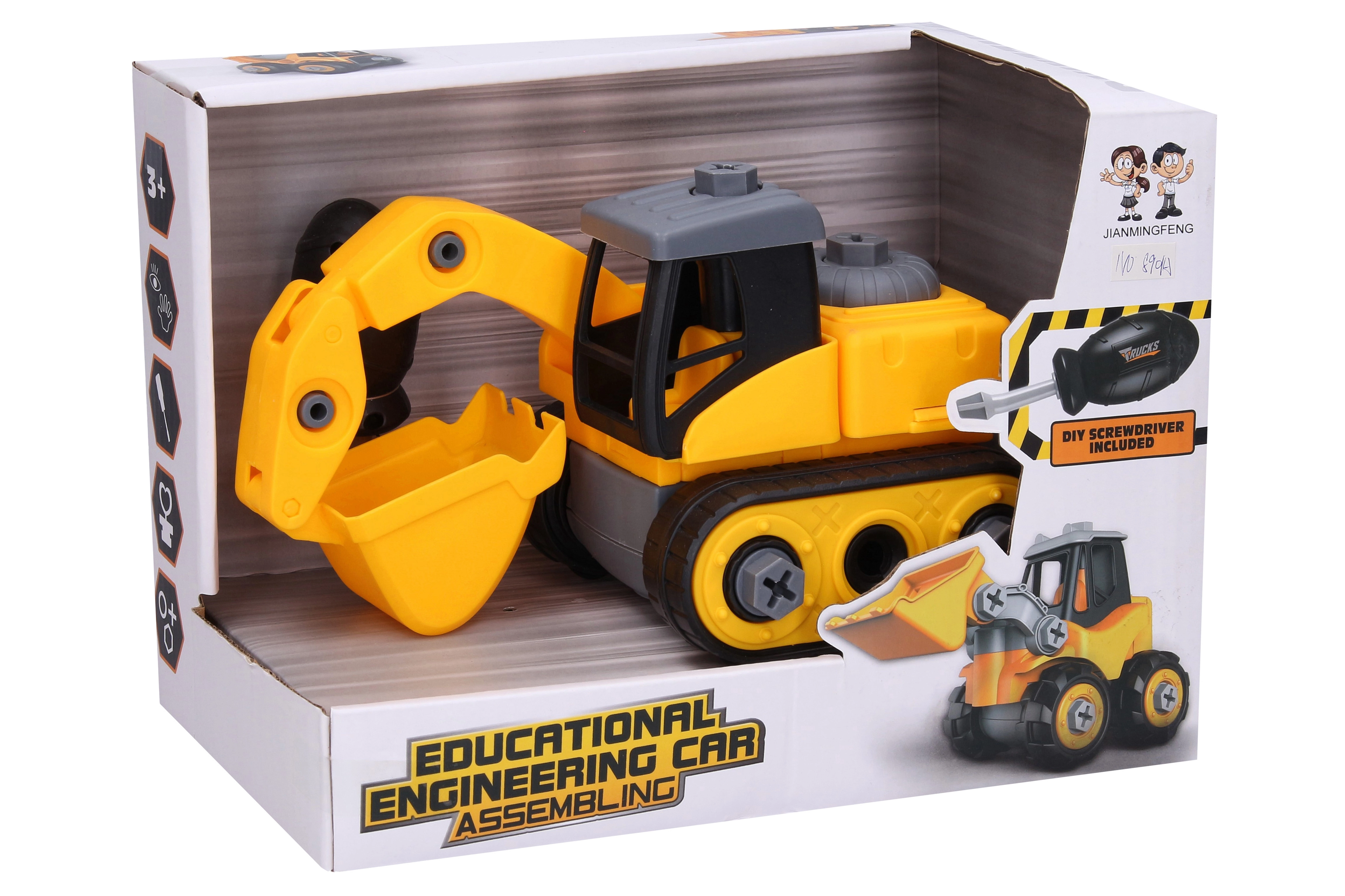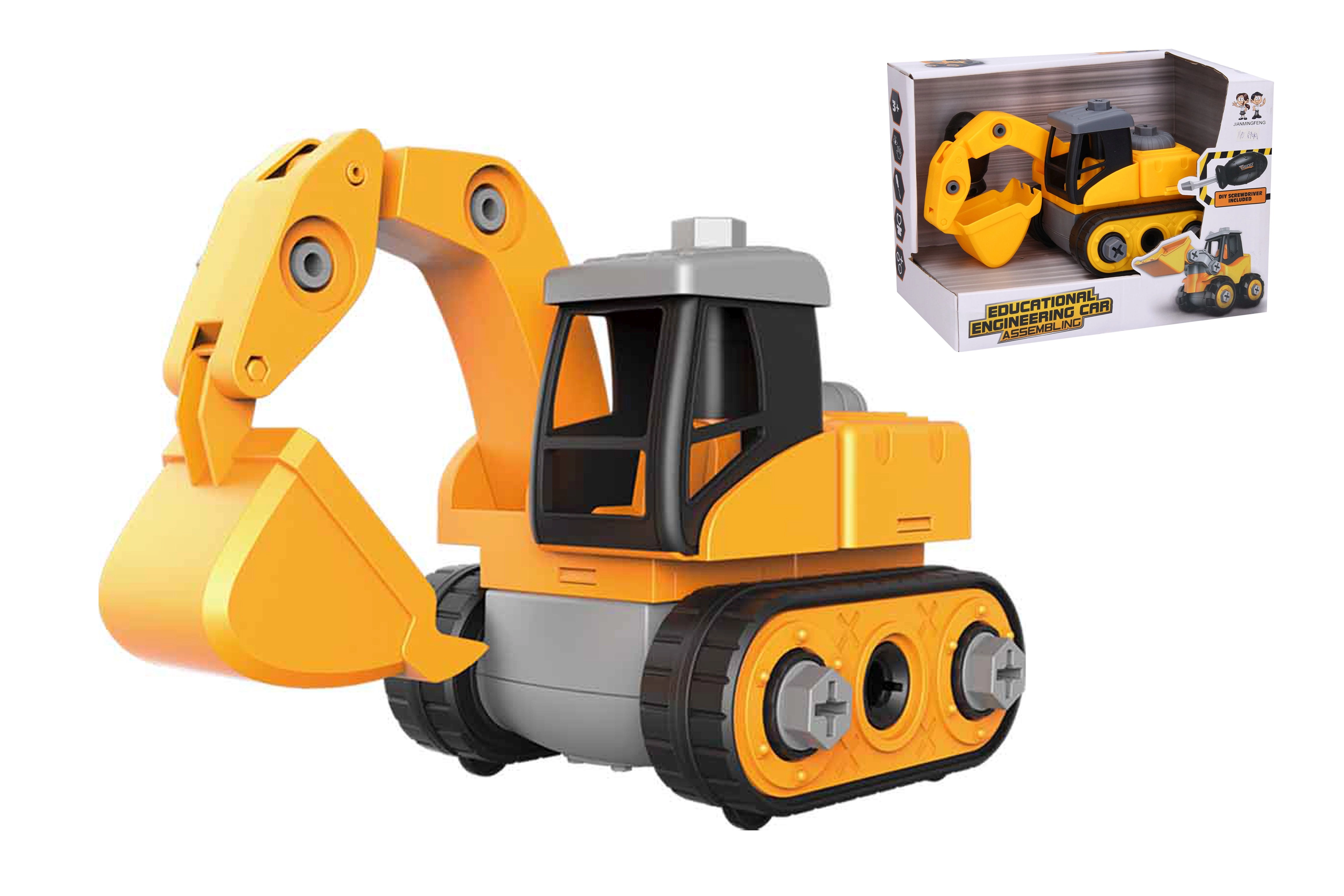 Skrūvējams ekskavators mazajiem būvētājiem, ideāls motorikas prasmju attīstīšanai. Izbaudiet jautrību, saliekot un izjaucot!
