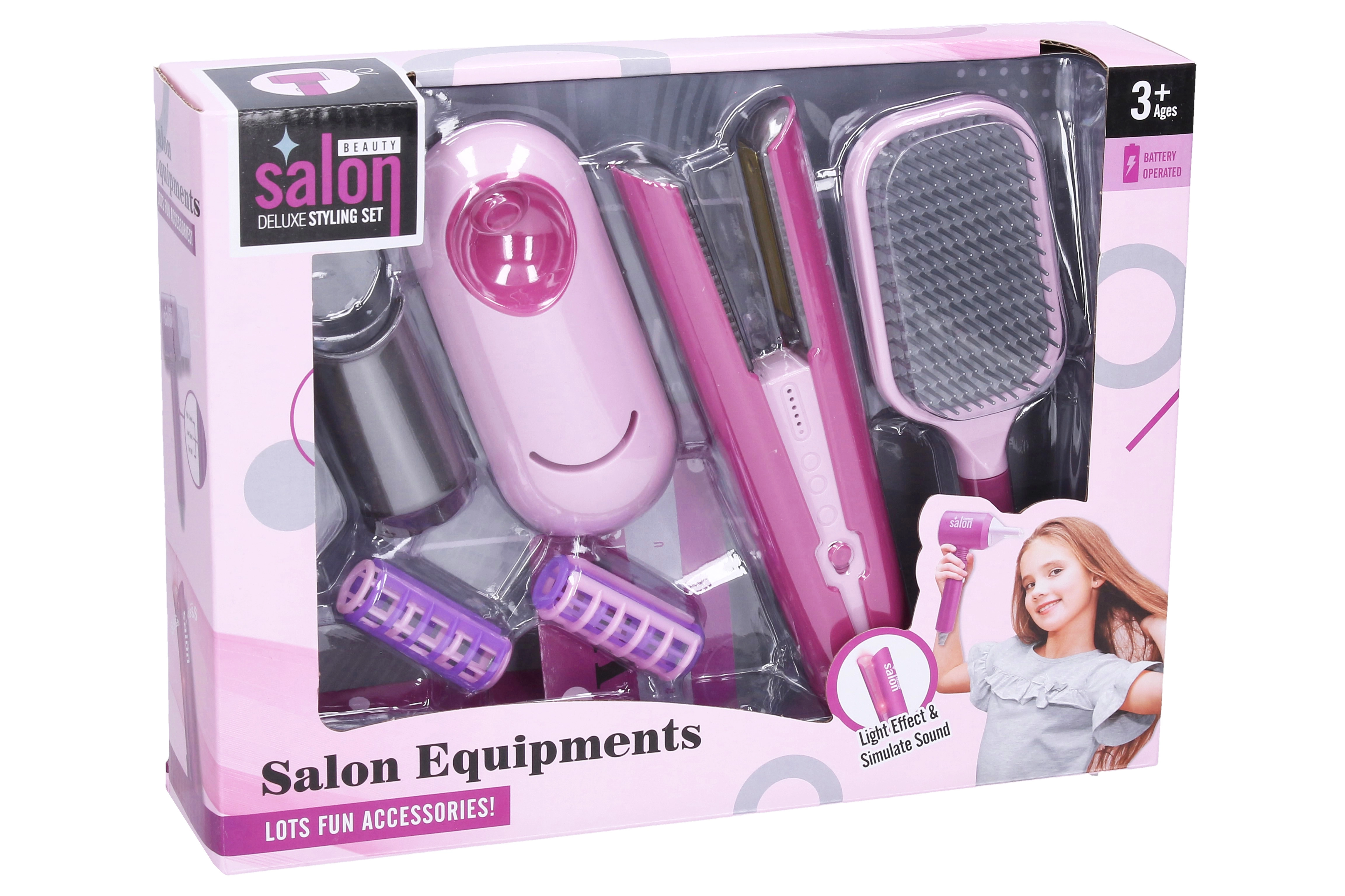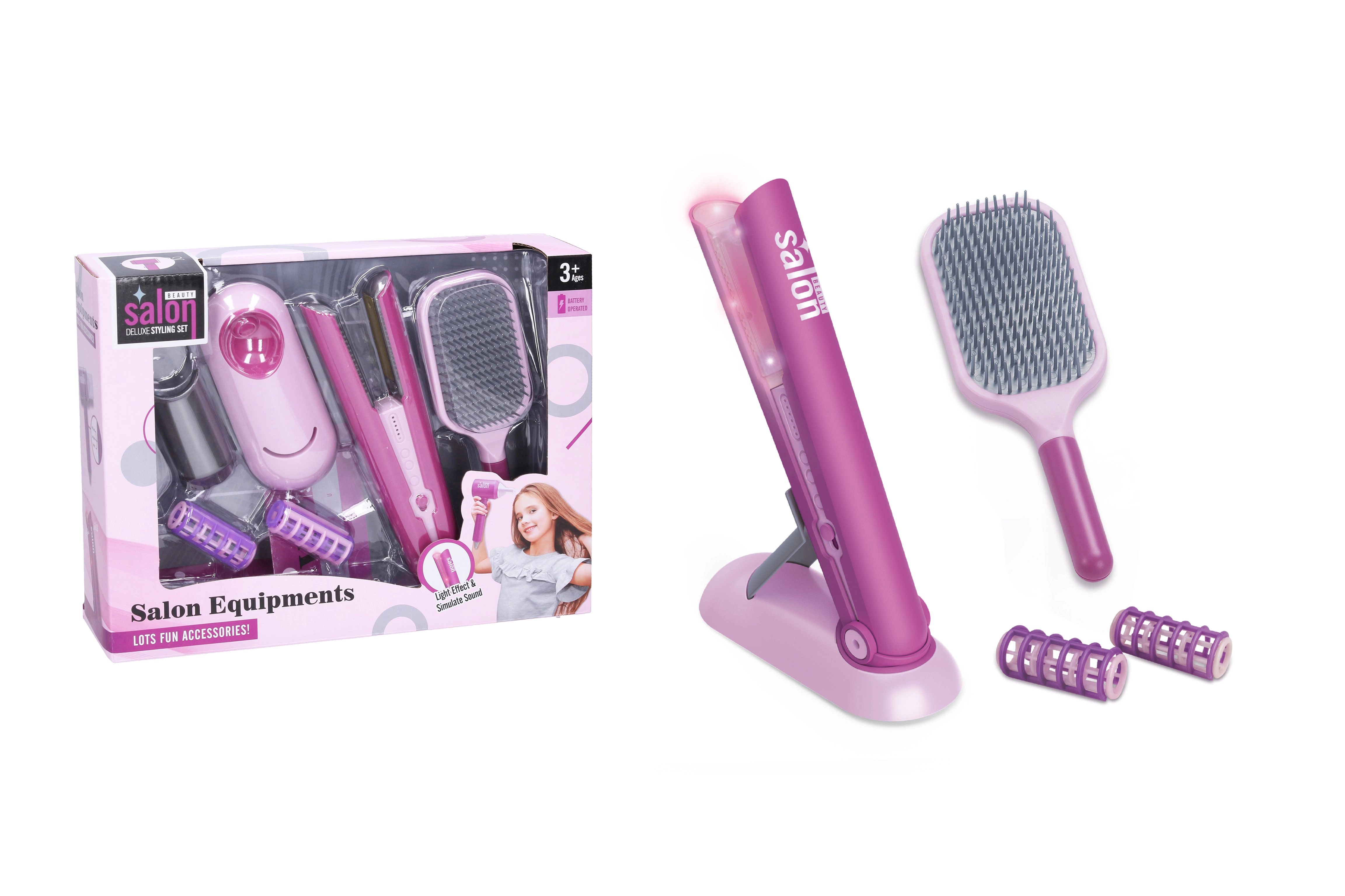 Stilīgs bērnu matu taisnotājs 19 cm garumā iepriecinās mazos frizierus. Komplektā ir bagātīgs piederumu klāsts un jautri gaismas un skaņas efekti, kas spēlei piešķir reālistiskumu. Praktiska komplekta sastāvā ir lokšķēres, birste, rullīši un lokšķēru statīvs, kas veicina radošu spēli un iztēles attīstību.