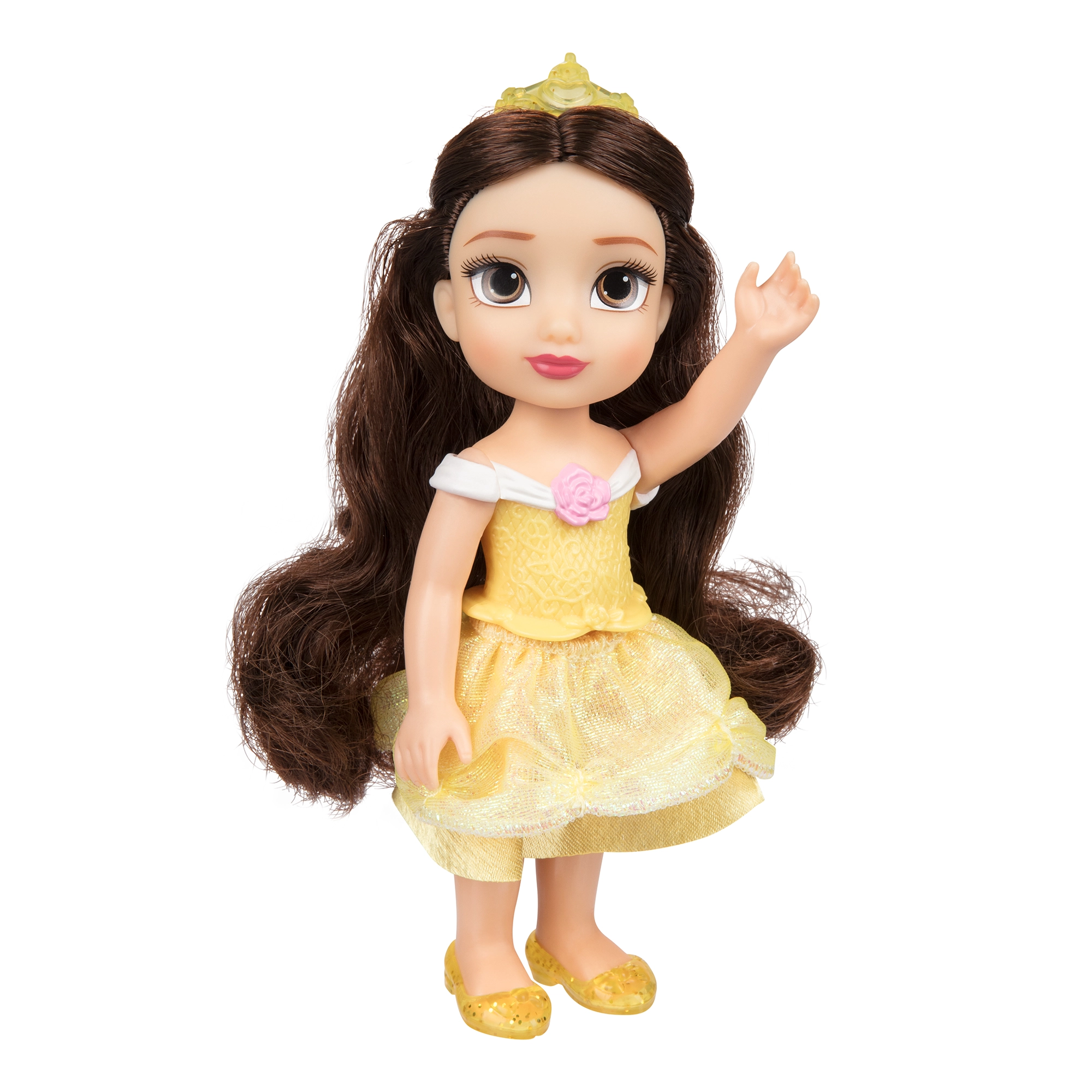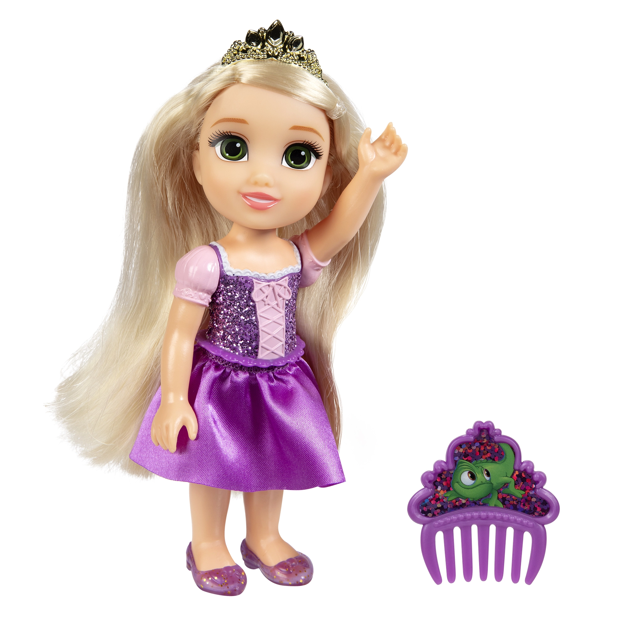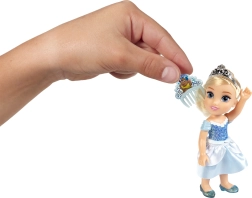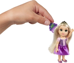 15 cm augstā lelle ērti iegulst bērna rokā un mugursomā. Mirdzoša kleita, tiāra un katras princeses ikoniskās krāsas nodrošina tūlītēju “wow” efektu.