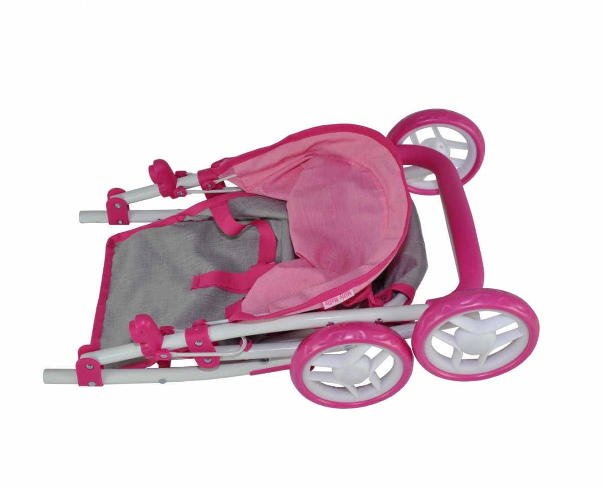 Vieglie un stabili leļļu ratiņi MILLY MALLY Natalie Prestige Pink iepriecinās katru mazo rūpīgo saimnieci. Tie piedāvā metāla rāmi, salokāmu jumtiņu, putu riteņus un apakšējo grozu sīkumiem. Piemēroti lellēm līdz 50 cm, viegli salokāmi plakani, pārvalku var mazgāt.