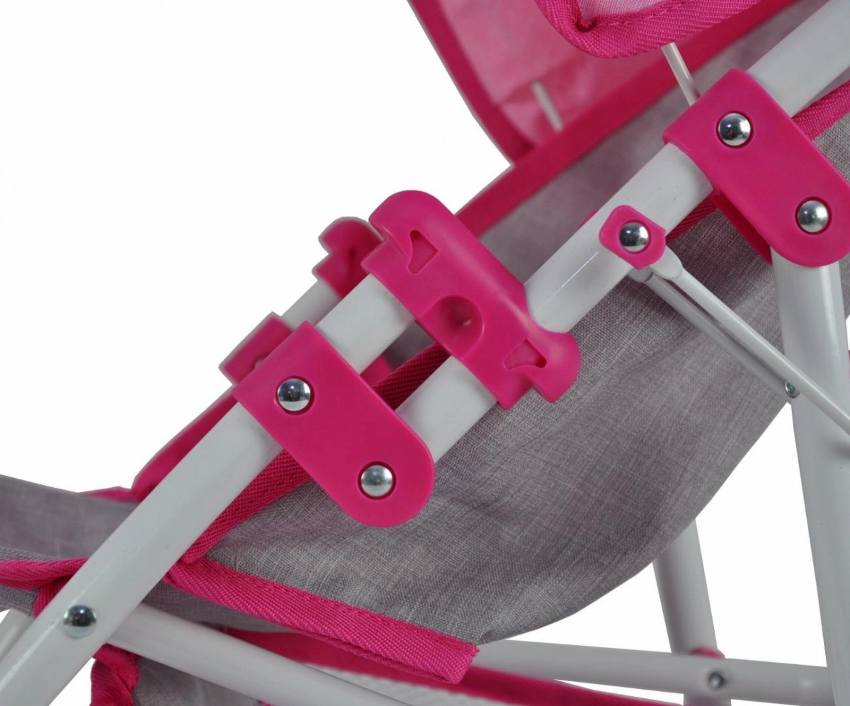 Stilīgi un praktiski leļļu ratiņi, kas izskatās kā īsti. Pateicoties izturīgajam metāla rāmim, mīkstajam rokturim un drošības siksnām, tie ir ideāli piemēroti ikdienas rotaļām mājās un ārā. Salokāmais jumtiņš pasargā lelli no saules un vēja, savukārt apakšējais tīkliņš nodrošina vietu rotaļlietām un nelieliem pirkumiem.