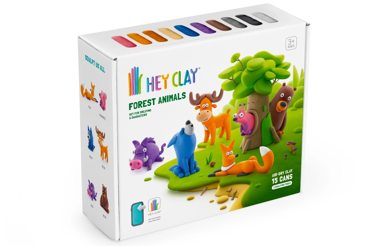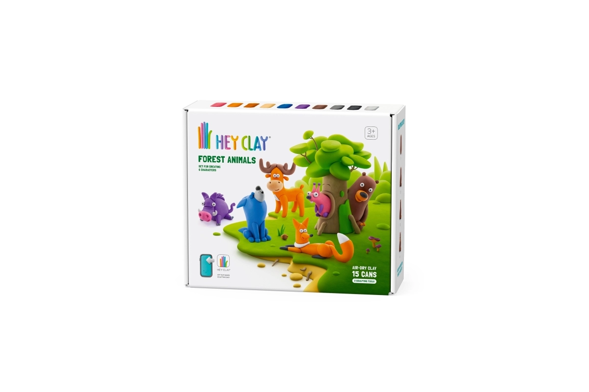 Komplekts HEY CLAY Meža dzīvnieki sniedz bērniem un vecākiem stundām ilgu radošu izklaidi bez nekārtības. Īpaši vieglā putu modelīna ir patīkama pieskārienam, nelīp pie rokām vai mēbelēm un pēc figūriņas izveides pamazām cietē gaisā. Pateicoties bagātīgajai krāsu paletei, viegli izveidosiet visas komplekta figūriņas un arī savus oriģinālus veidojumus.