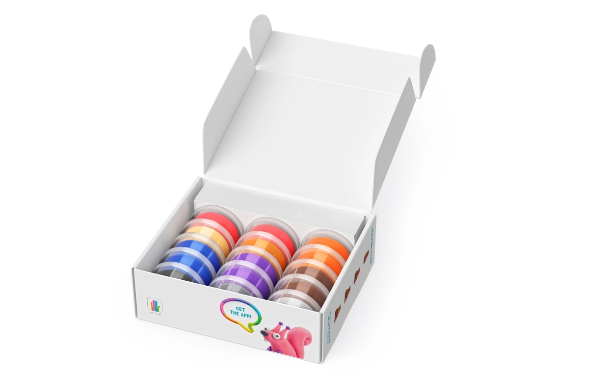 Bagātīga krāsu palete 15 atsevišķos trauciņos ļauj bērniem viegli jaukt toņus un modelēt visas komplekta figūriņas, kā arī radīt pašu idejas.