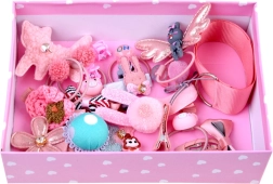Šis skaistais matu aksesuāru komplekts ir ideāli piemērots katrai mazai lēdijai, kura vēlas piešķirt saviem matiem eleganci un stilu. Komplektā ir 24 dažādi elementi, kas ļauj izveidot oriģinālas frizūras dažādiem notikumiem, piemēram, dzimšanas dienu svinībām, karnevāla ballēm vai brīvdienu piedzīvojumiem. Katrs gabals ir izstrādāts, domājot par komfortu un radošumu, tāpēc to var izmantot ne tikai svinīgos pasākumos, bet arī skolā vai ikdienas pastaigām.