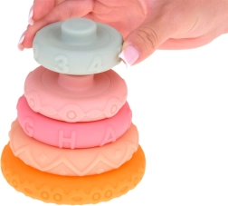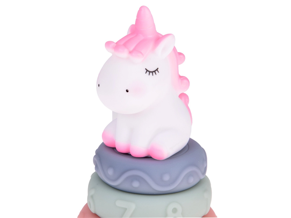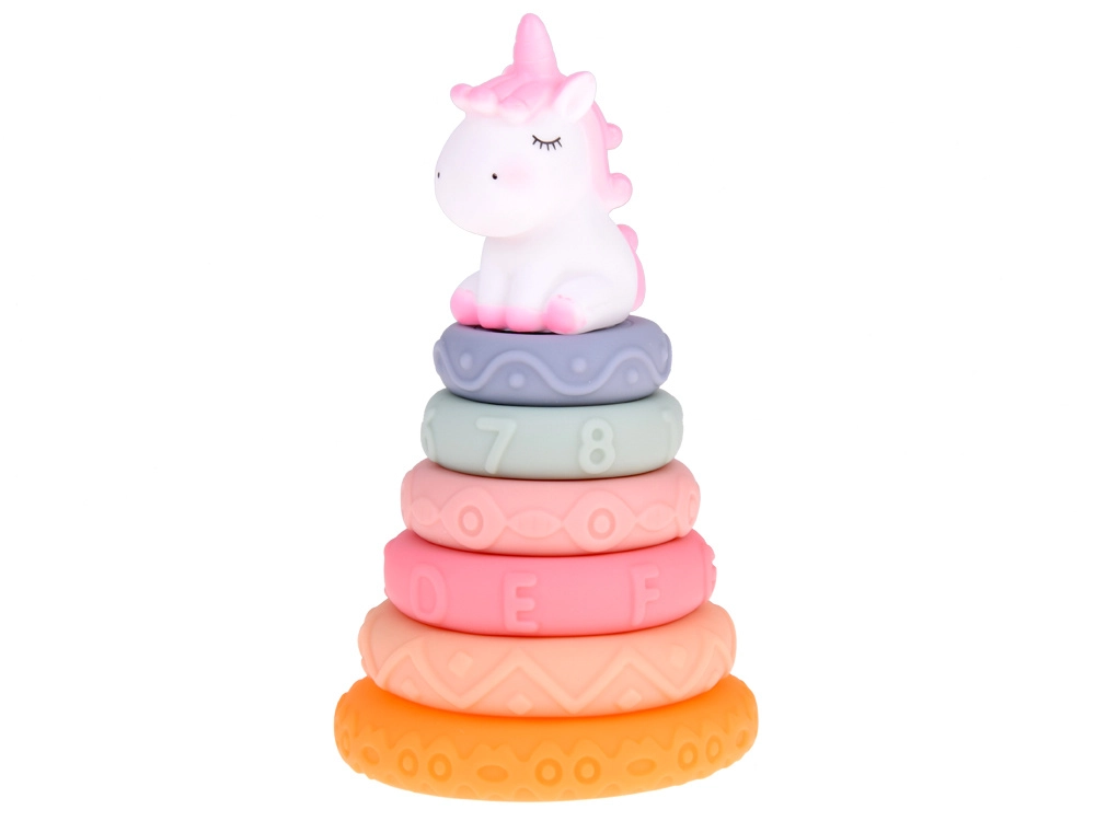 Gumijas un sensorā piramīda ir lieliska rotaļlieta pašiem mazākajiem. Tā sastāv no vienradža figūriņas un sešiem savstarpēji kārtojamiem gredzeniem, kas veicina smalkās motorikas attīstību un krāsu atpazīšanu.