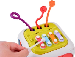 Spēle ar kubu dabiski attīsta sīko motoriku, māca bērniem atpazīt krāsas un formas un veicina loģisko domāšanu. Pateicoties grabuļojošiem klucīšiem un daudzveidīgām tekstūrām, tas sniedz bagātīgu sensoro stimulāciju un ilgas koncentrētas spēles minūtes.