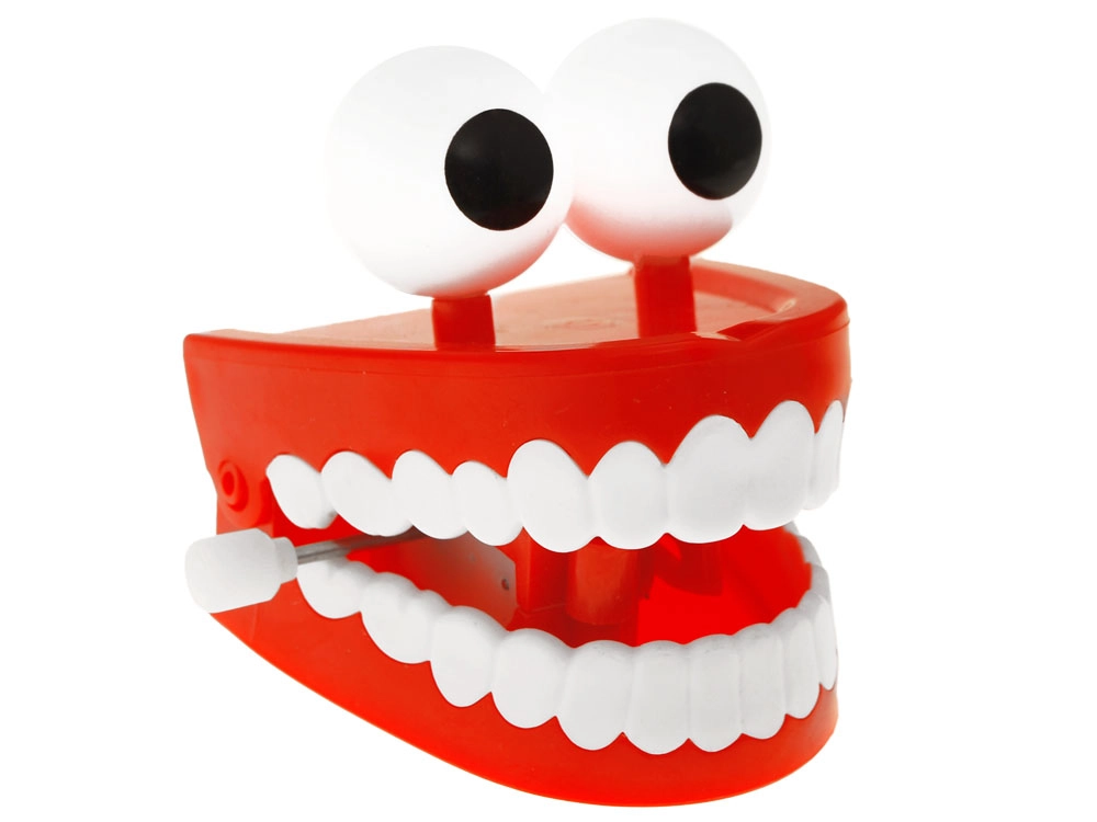 Šī plastmasas rotaļlieta ar uzsvelkamu atsperes mehānismu, pagriežot atslēdziņu, sāk kustēties un ritmiski klikšķināt ar zobiem. Jautrais dizains ar lielām “zīmētām” acīm garantē smaidu uz ikvienas sejas un parūpēsies par izklaidi mājās, skolā un birojā.