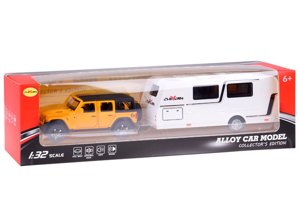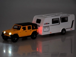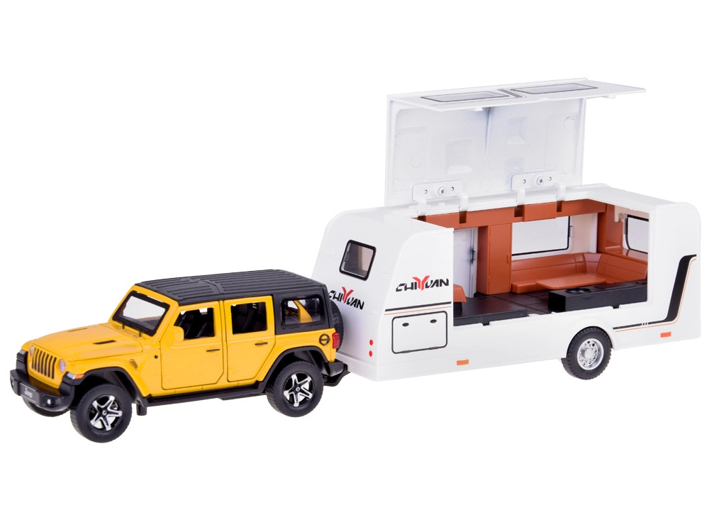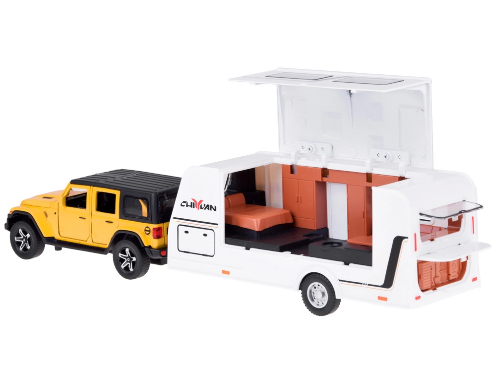 Šis detalizēti izstrādātais komplekts apvieno robustu apvidus auto un funkcionālu karavānu, ļaujot bērniem veidot pašiem savus brīvdienu stāstus. SUV ir no metāla ar plastmasas detaļām, tam ir funkcionālas durvis, atverams bagāžnieks, gaismas efekti un motora skaņa. Pateicoties pull-back mehānismam, transportlīdzeklis pēc atvilkšanas pats sāk kustību.