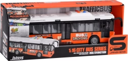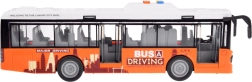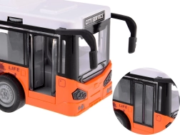 Šis autobusa modelis ir izgatavots no kvalitatīvas plastmasas ar uzsvaru uz detaļām. Tas ir aprīkots ar mehānisko piedziņu: pietiek to pastumt vai pavilkt atpakaļ, atlaist uz līdzenas virsmas, un autobuss pats sāks braukt. Gumijas riepas nodrošina labāku saķeri ar virsmu.
