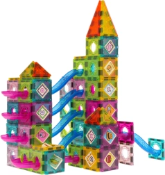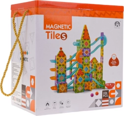 Šis plašais komplekts apvieno magnētiskās flīzes un bumbiņu trases elementus, lai bērni no 3 gadu vecuma varētu būvēt torņus, pilis un oriģinālas trases krāsainām bumbiņām. Detaļas izgatavotas no kvalitatīvas, gludas plastmasas košās krāsās, magnētiskās malas viegli un cieši savienojas, un konstrukcijas labi turas pat augstākās būvēs.