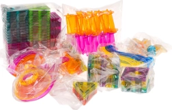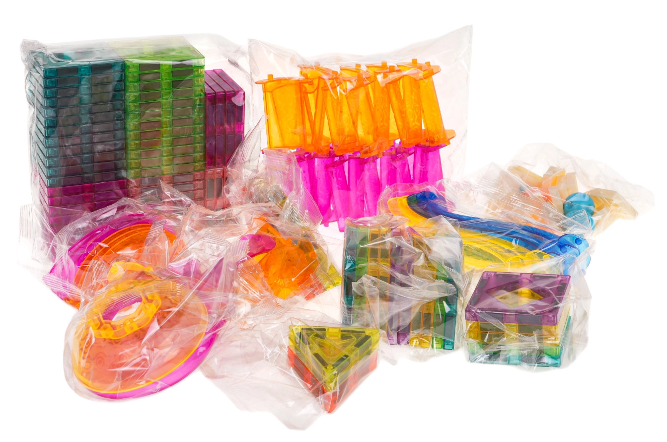 Iepakojumā ir viss nepieciešamais ātram startam: 226 detaļas, tostarp 106 magnētiskie elementi, 10 bumbiņas, dekoratīvas uzlīmes, attēlu instrukcija un izturīga kaste ar rokturi pārnēsāšanai. Kastes vāks ir aprīkots ar formu šķirotāju, kas veicina mācīšanos rotaļājoties.