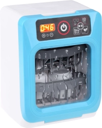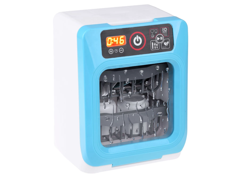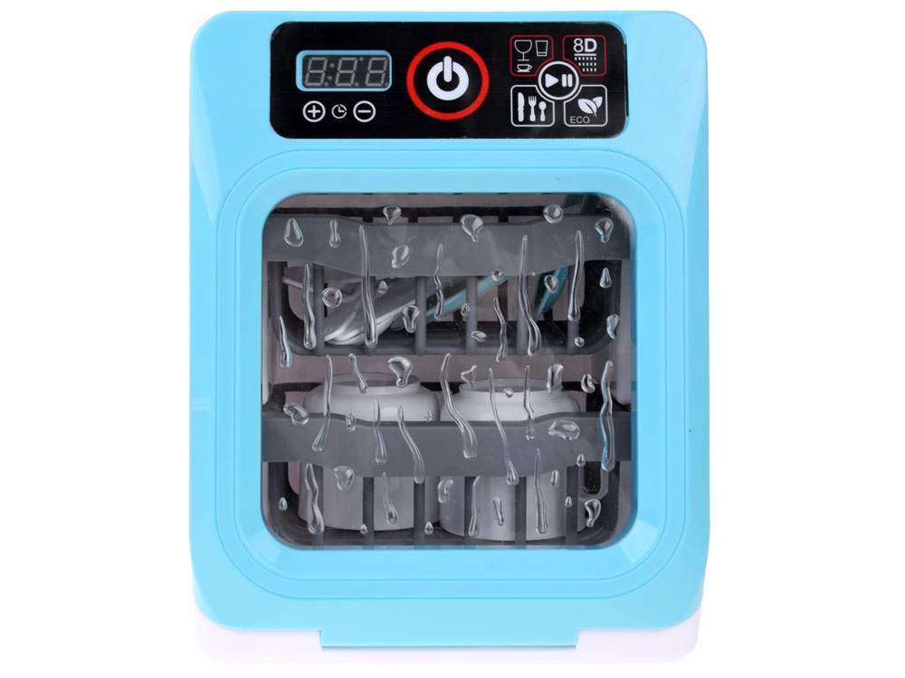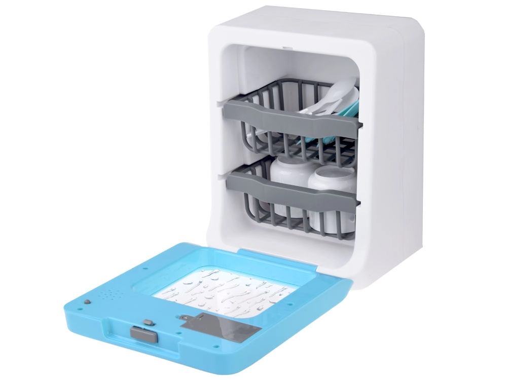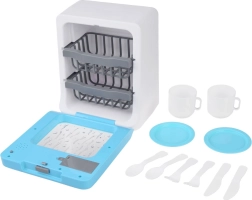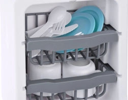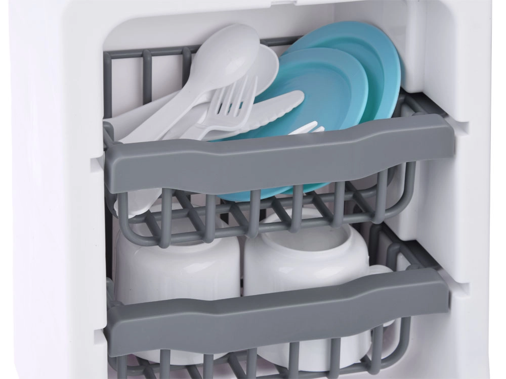 Šī bērnu trauku mazgājamā mašīna spēlē ienes reālistiskus elementus: no ūdens šalkoņas un skalošanas/sterilizācijas skaņām līdz pat programmas beigu signalizācijai. Pateicoties skārienpanelim, mazie palīgi viegli izvēlas režīmu un laiku. Atveramas durtiņas un divu līmeņu grozi nodrošina ērti ielikt šķīvjus, krūzītes un piederumus.
