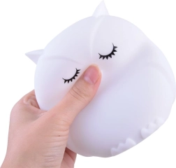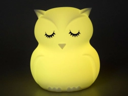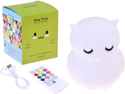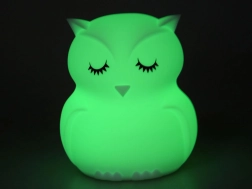 Šī bērnu naktslampiņa pūce no maiga un droša silikona maigi apgaismos tumsu un palīdzēs aizdzīt nakts bailīšus. Tā piedāvā 9 krāsas, tostarp baltu, sarkanu, dzeltenu, rozā, zaļu, zilu, oranžu, tumši zilu un violetu. Krāsas var pārslēgt ar pieskārienu uz pašas lampiņas vai ērti ar tālvadības pulti.