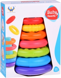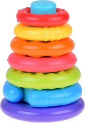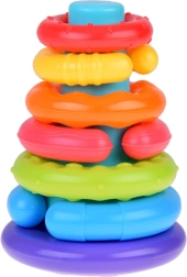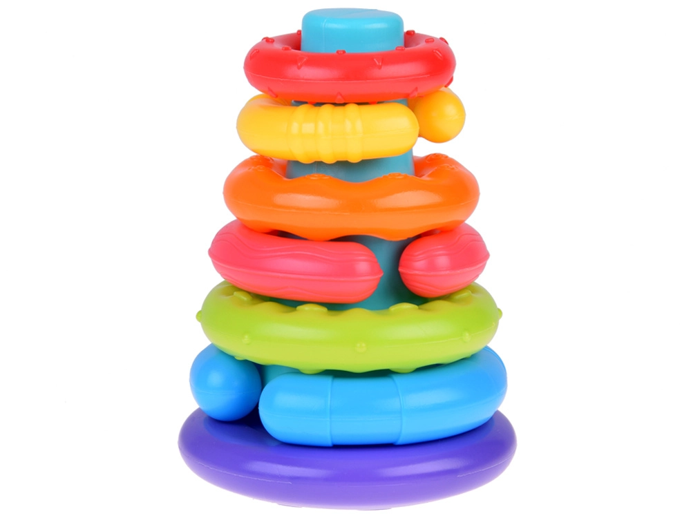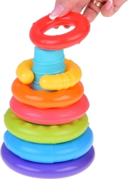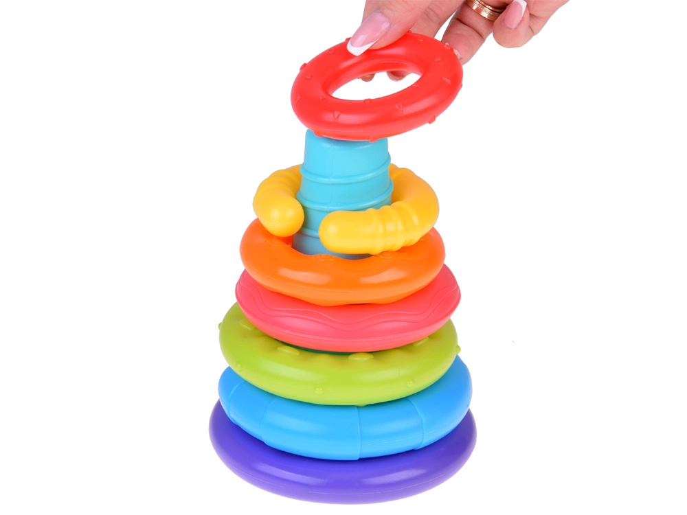 Krāsaina sensorā piramīda ar sešiem gredzeniem ir ideāli piemērota bērniem no 6 mēnešu vecuma. Tā veicina sīkās motorikas attīstību, roku–acu koordināciju un sensoro uztveri, pateicoties dažādām tekstūrām un krāsām. Mīkstā plastmasas gredzeni ir viegli satverami un sakraujami, rotaļīgā veidā attīstot bērna prasmes un ziņkāri.