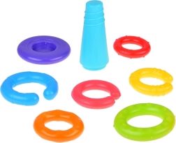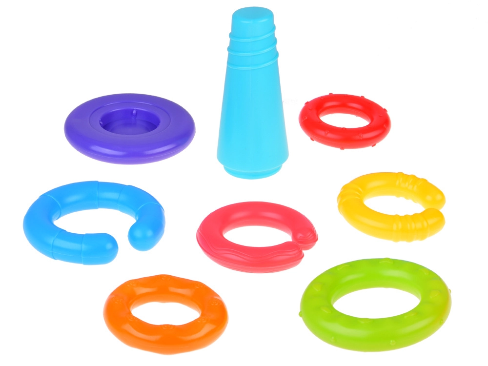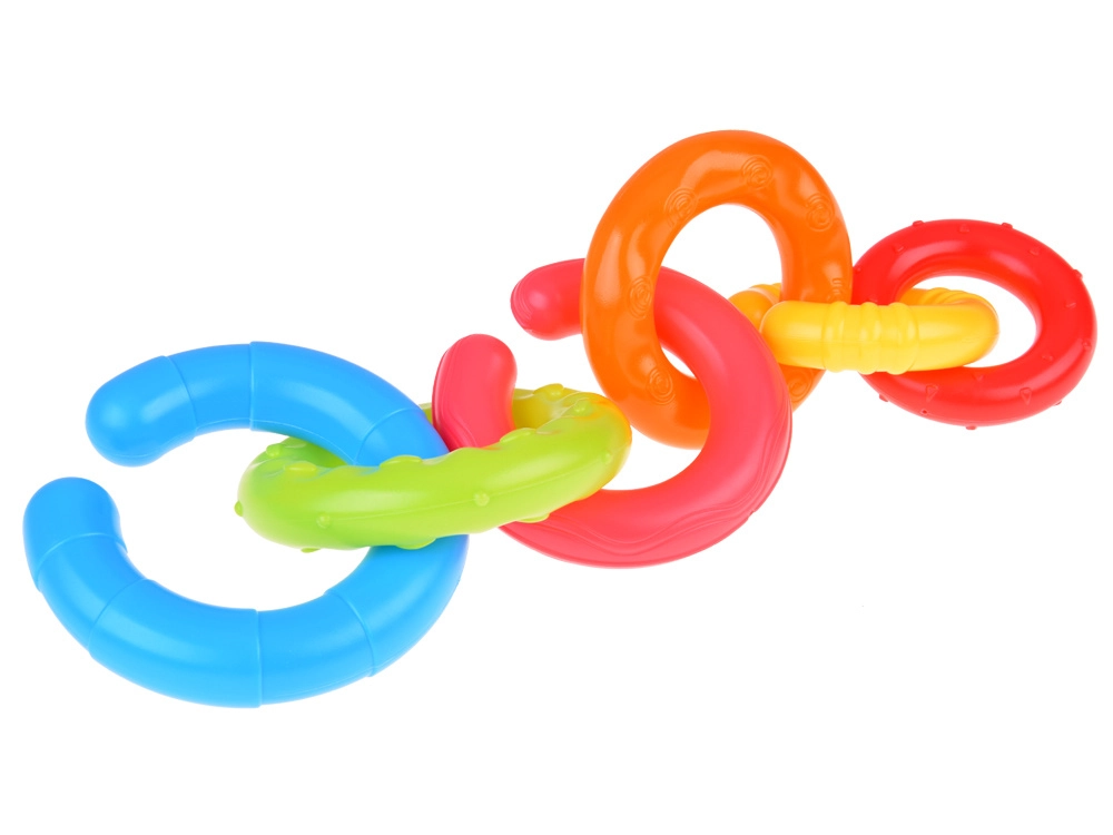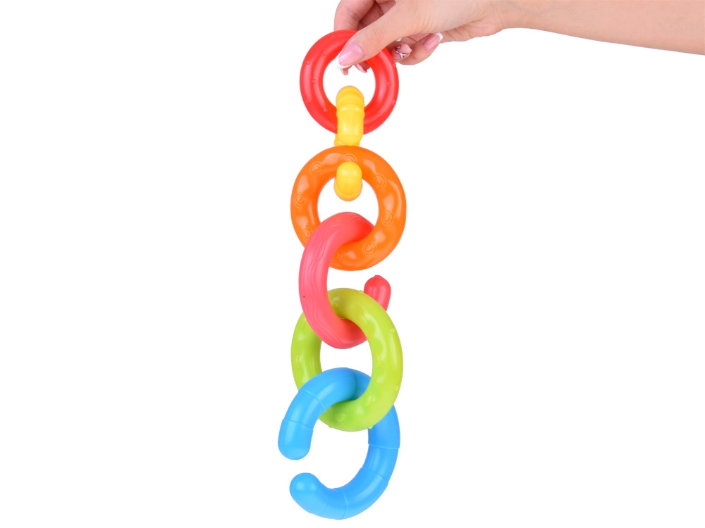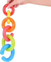 Katrām gredzenam ir atšķirīga virsma un krāsa, kas veicina taustes uztveri, vizuālo uzmanību un bērna ziņkāri.