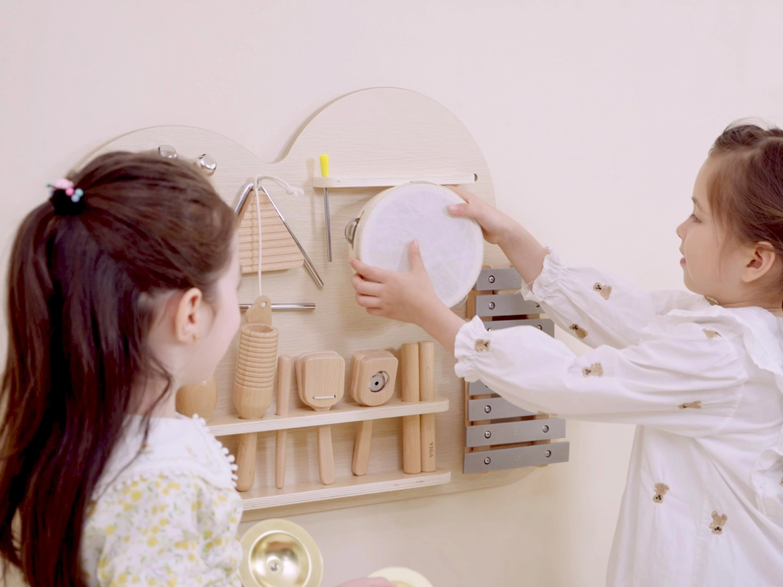 Šis koka mūzikas panelis bērniem nodrošina ērtu piekļuvi 12 dažādiem perkusiju instrumentiem, piemēram, ksilofonam, tamburīnam un trijstūrim. Tas palīdz bērniem aktīvi attīstīt muzikālo izglītību un veicina vispusīgu attīstību.